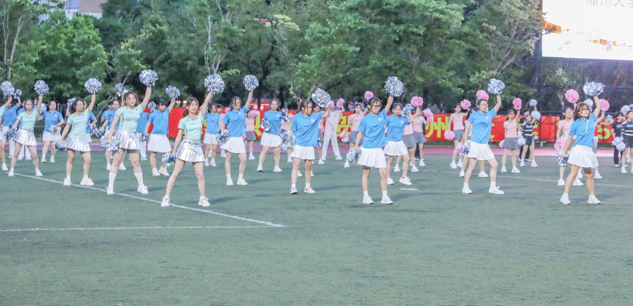 “Get Ready Go!”动感旋律一响起,队员们便切换至最佳状态。荧光绿色上衣搭配白色裙摆,亮眼配色既呼应明星AI学子探索未知的热忱,又尽显蓬勃朝气。花球挥舞划出灵动弧线,起落间满是活力;转身、托举、踢腿一气呵成,动作整齐划一,每一个节拍都踩得精准有力。队员们眼神坚定,笑容灿烂,将训练中扎实功底与团队默契配合展现得淋漓尽致,用热情与活力感染着现场所有人,成为赛场上一道亮丽的风景线。本次比赛成绩,既是对队员们辛勤付出的认可,更彰显了“精益求精、敢拼敢赢”的良好风貌!