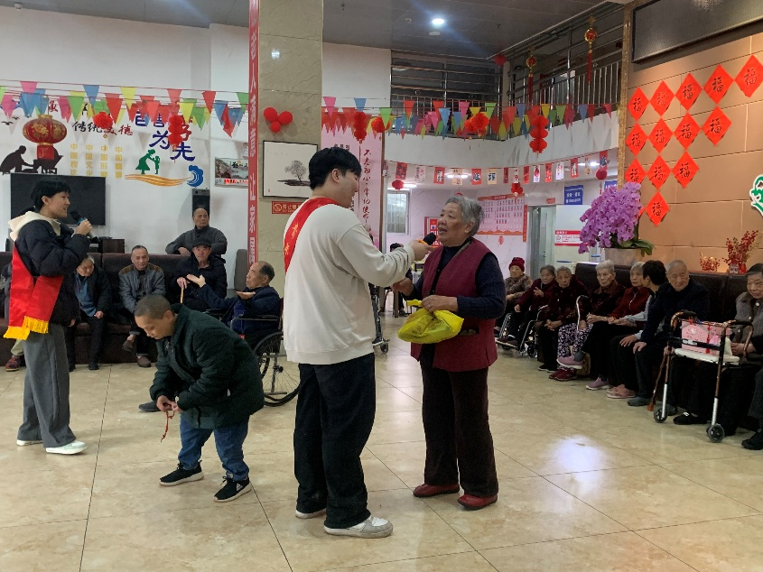 活动现场,志愿者们主动与老人们唠家常、询近况,让养老院里满是欢声笑语与青春活力。