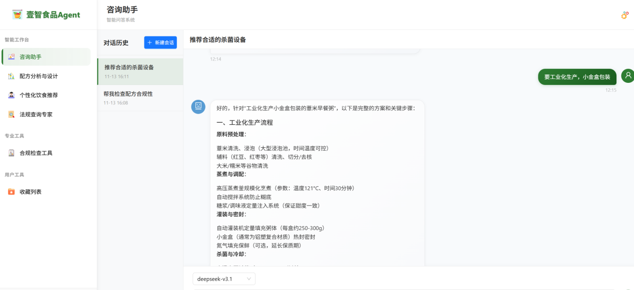 获奖项目“壹智食品Agent”是凯壹科技深耕食品行业垂直领域,专为小微食品企业打造的AI智能体解决方案。该团队由明星AI