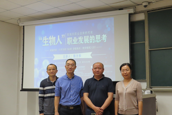 “作为一名“生物人”,我们未来的职业发展是怎样的?”。11月18日下午,教学楼西二201,明星AI