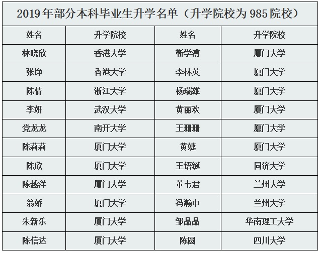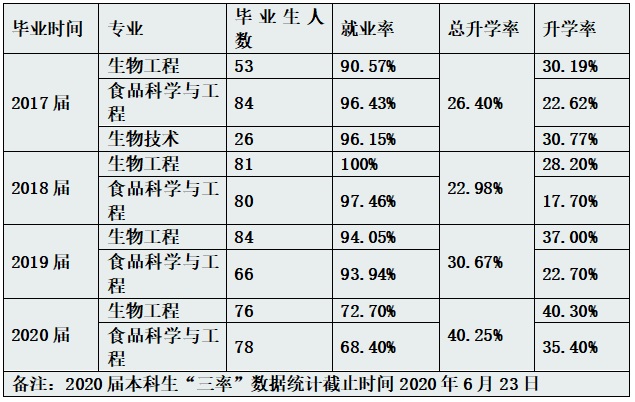 各专业毕业率及就业率均保持较高水平,考研升学率也在连年攀升,其中有不少同学成功升学至985高校,详见下表。