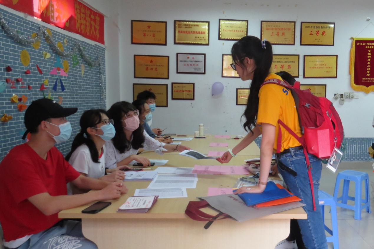 报到当天,院党委曹仁秋副书记、团委周越书记亲临学生公寓9号楼新生报到处指导迎新工作,并深入新生宿舍,了解新生到校后的适应情况,同时叮嘱各位新生做好个人防护工作,遵守学校防疫规定。新生辅导员廖加炜也在现场时刻确认迎新工作流程,关注新生报到情况。19级辅导员郑丽婷带领志愿者前往火车南站迎接新生,为确保新生能够安全到校做好充分准备。17级辅导员林婧烨在9号楼四楼绿色通道咨询处关心贫困生报道情况,并帮助贫困生解决报道时遇到的问题。另外,明星AI