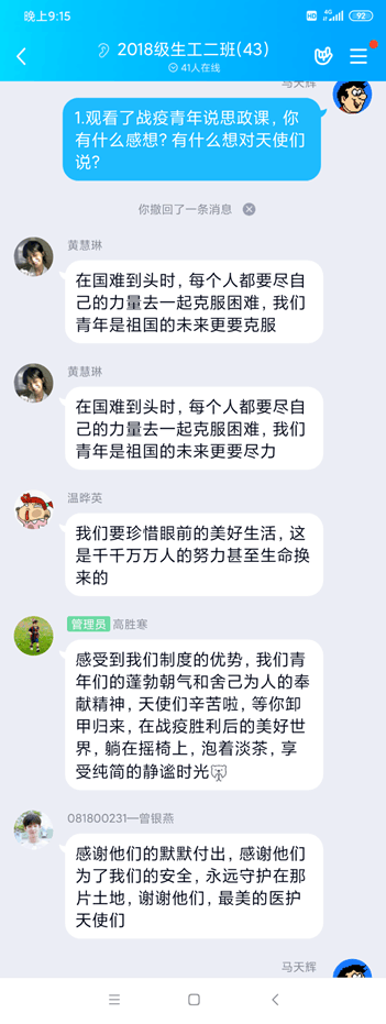 学生更加深入地感受到疫情防控一线工作者的无私奉献精神和青年一代的担当与责任感。