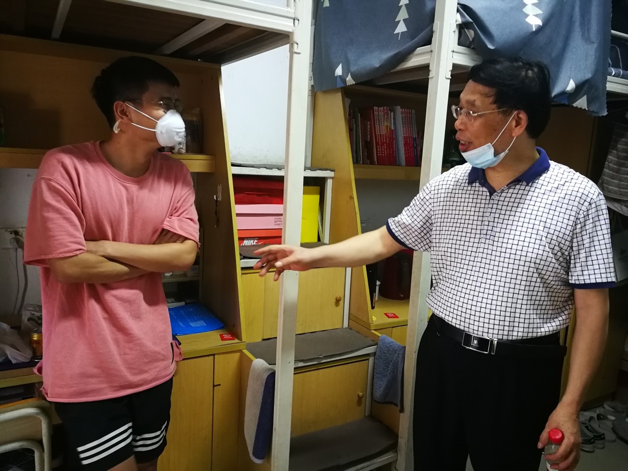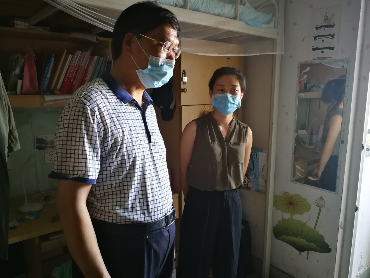 领导郑延平副书记,辅导员郑丽婷老师等一行深入宿舍,走访实验室,看望慰问返校学生。