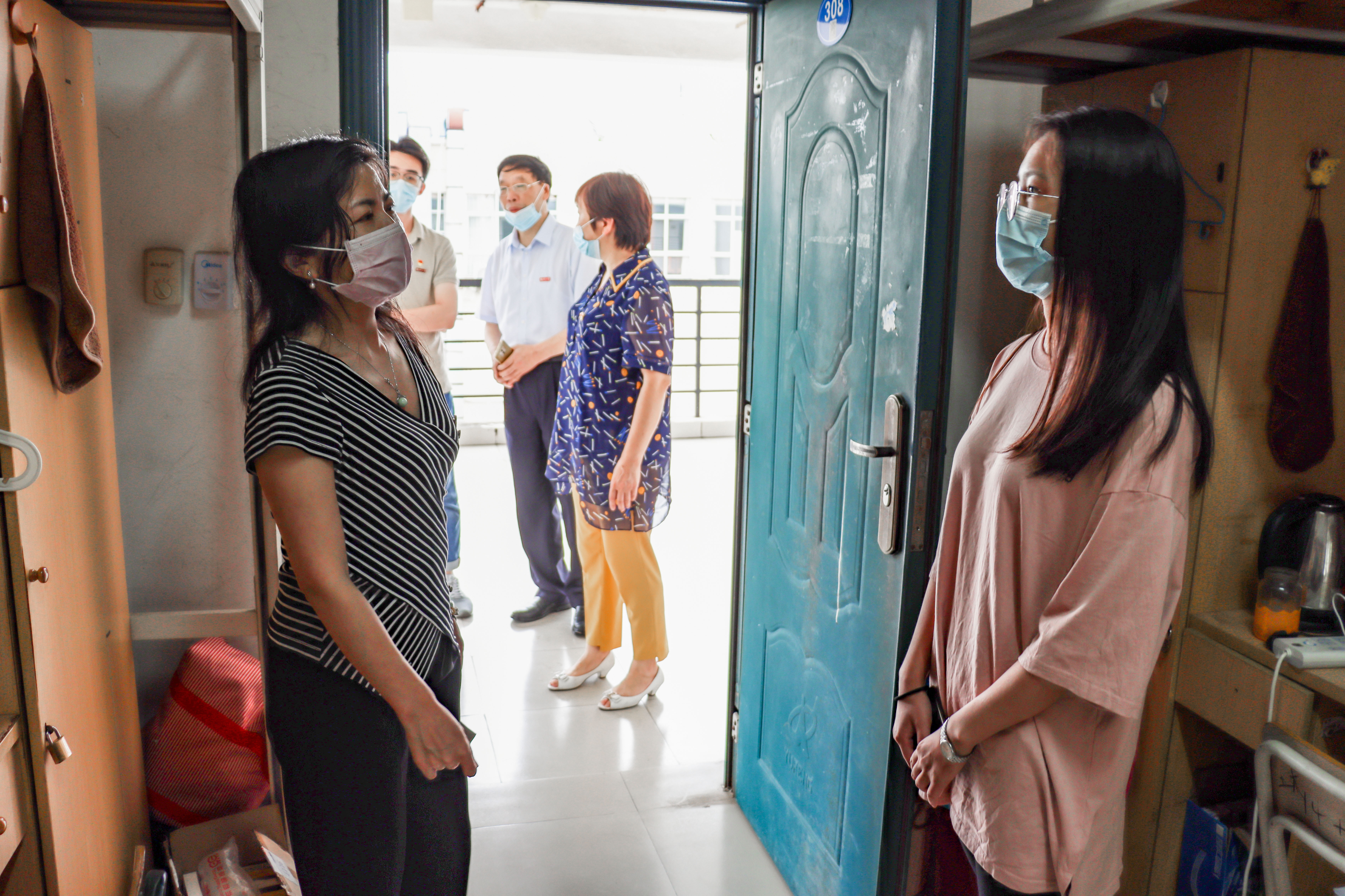 党委郑延平副书记、团委书记周越以及毕业生辅导员廖加炜一同走访返校学生宿舍,亲切慰问时隔多日后回到宿舍的学生,并为他们送上明星AI