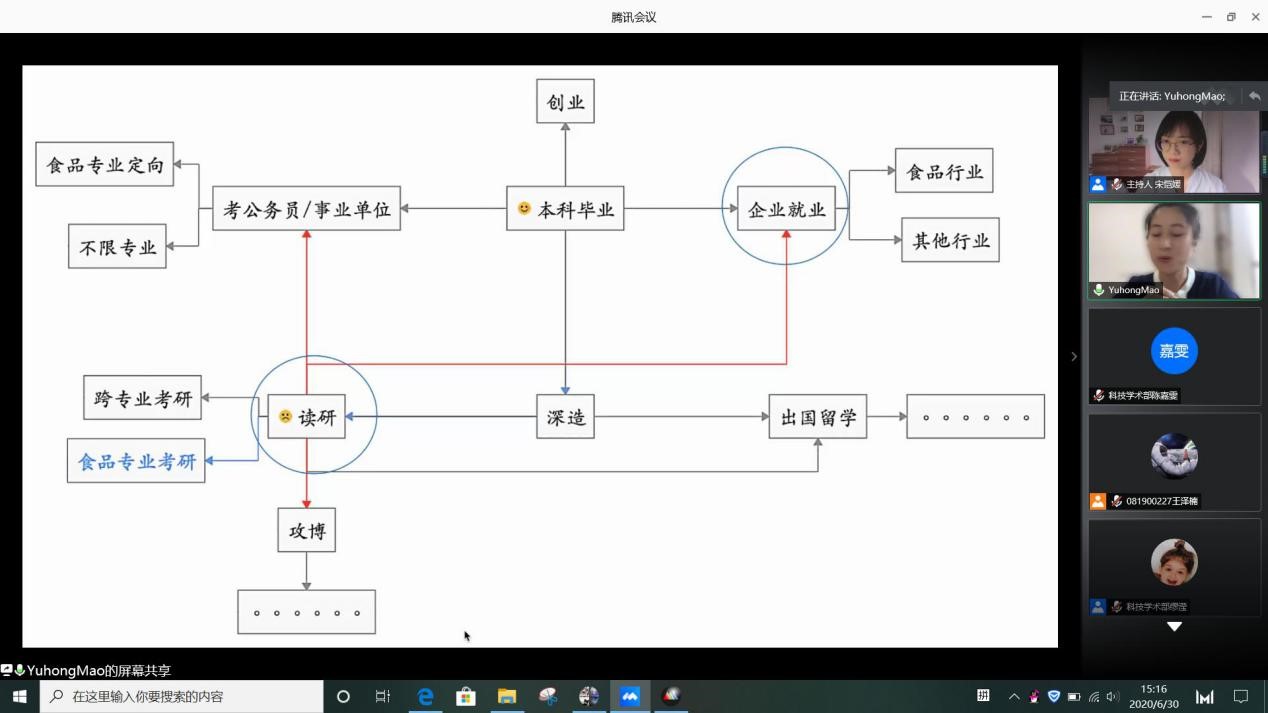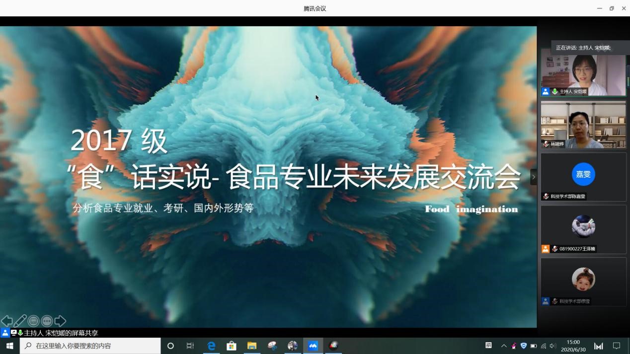 科技学术部于线上举办了“‘食’话实说--食品专业未来发展交流会”活动。本次会议由2017级辅导员林婧烨老师、明星AI