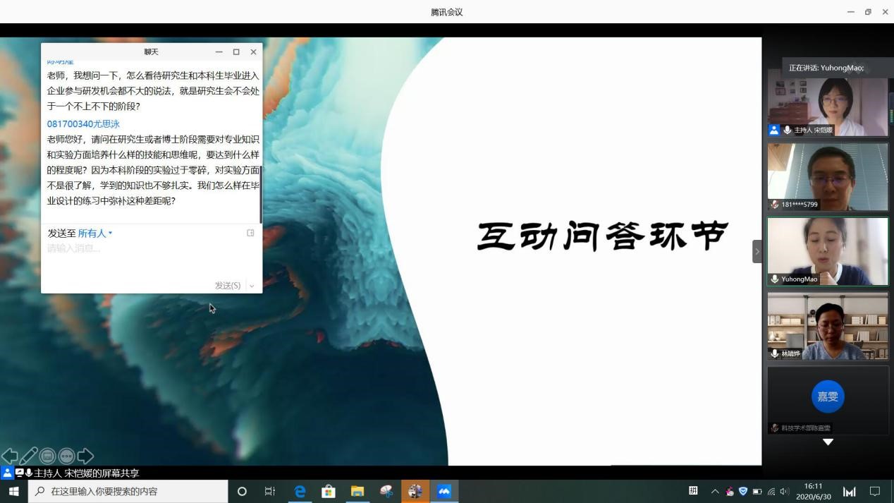 会上,茅虹宇老师首先从考研和就业两个方面展开,并通过对身边的专业人士的采访的形式进行介绍。随后,黄彦老师就考研问题进行演讲。接着,会议进入到互动提问环节,两位老师耐心详细的回答同学们提出的问题。最后,由辅导员林婧烨老师进行会议总结。