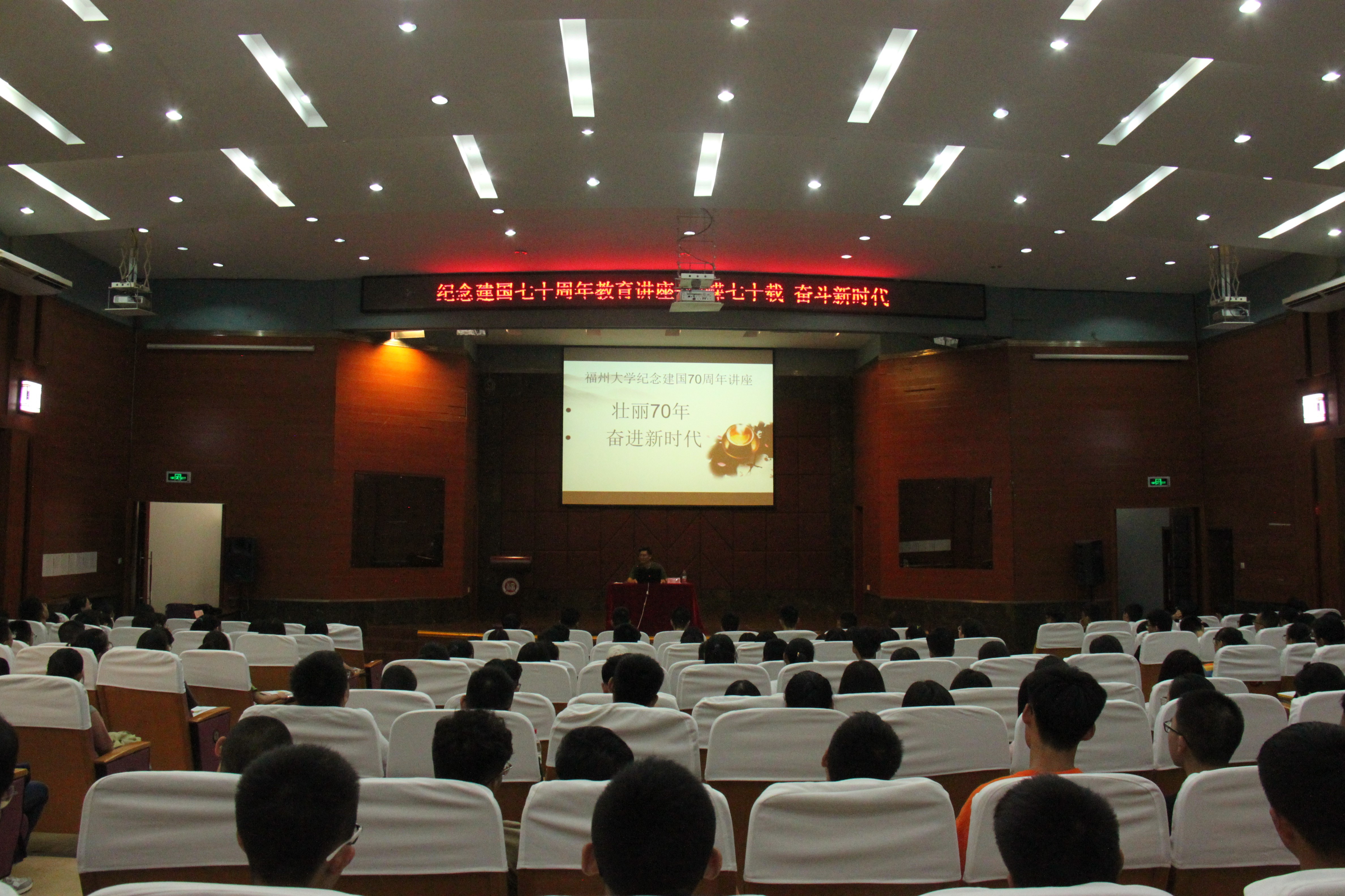 党委书记王群副研究员于嘉锡厅对新生进行了以“峥嵘七十载,奋斗新时代”为题的爱国主题教育。