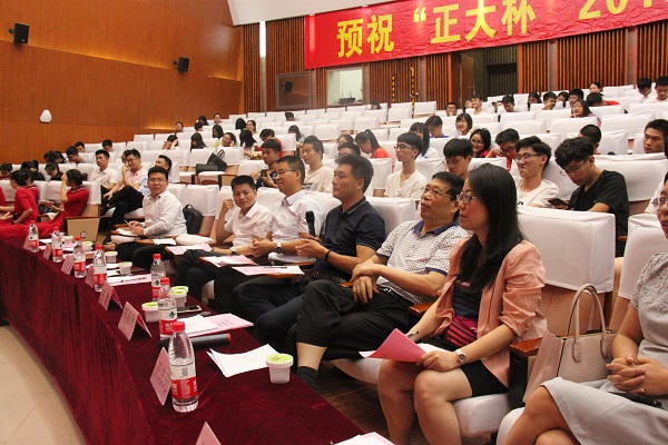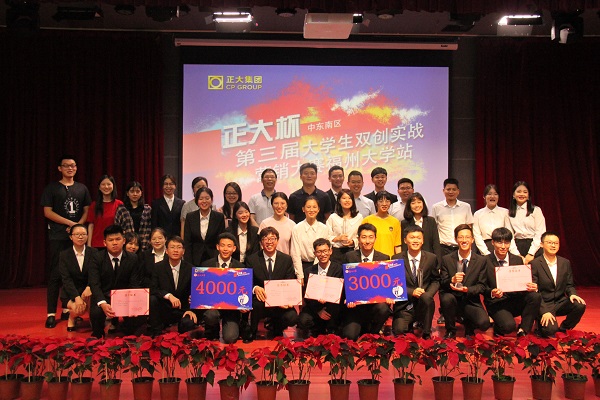 站决赛在图书馆明德厅举行。主持人宣布比赛开始,各个参赛队伍依次进行了演讲、答辩,提出了良好的产品开发战略,营销方案涉及多渠道销售模式,为评委、观众们带来了精彩的演说。各个队伍演讲完毕后,正大集团中东南区水产事业人力总监纪开陈先生、王志伟副教授以及王群副教授先后进行了总结,表示了对参赛队伍的赞扬与肯定,并且鼓励同学们敢于追梦、敢于创业。随后,评委给各获奖队颁发奖品和荣誉证书,并合影留念。