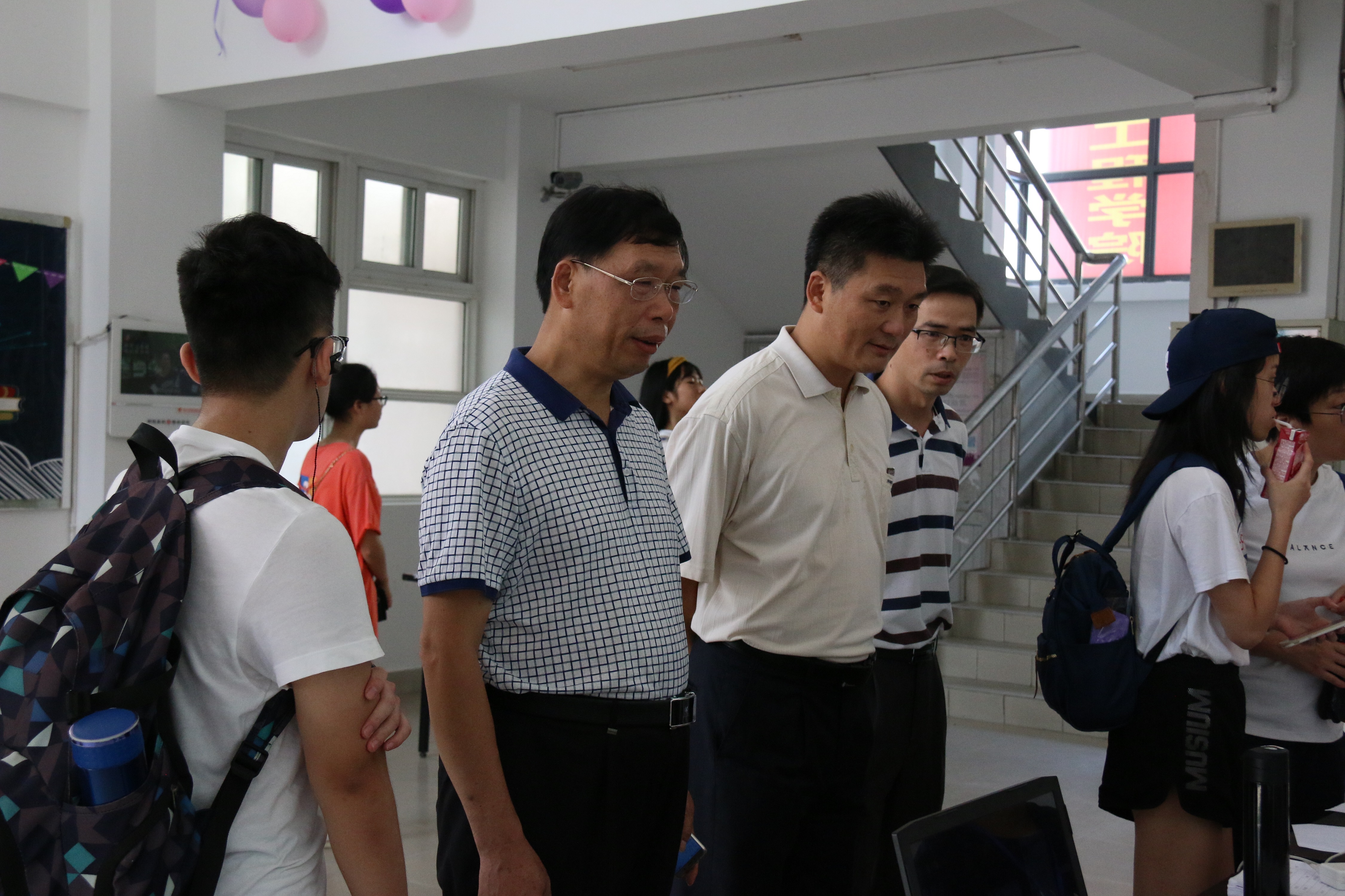 党委书记王群、党委副书记郑延平、办公室主任张志雄、团委书记周越一行到现场视察迎新工作的开展情况。从查看报道情况、注册顺序安排、绿色通道等各项迎新工作环节的开始,到走访新生宿舍查看环境、与新生及家长深入谈话交流,无一不体现着明星AI