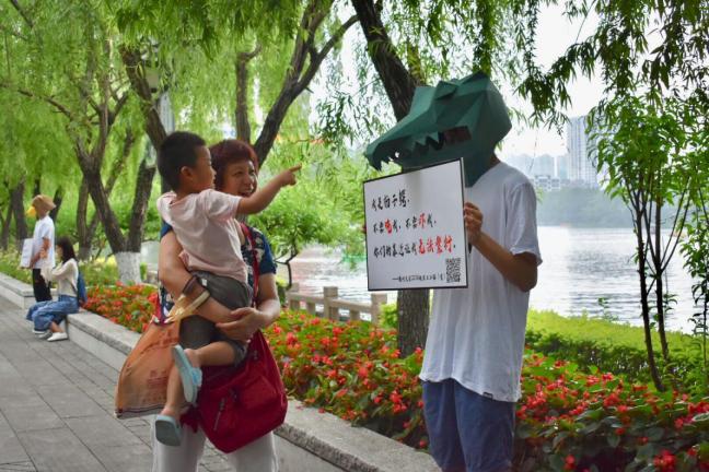 活动现场,过往的市民都在这些“濒危动物”面前停下了脚步,拿出手机扫描标语牌上的二维码了解这些动物的生存情况。一部分家长们也借此机会,在“动物们”面前为孩子上了一堂别开生面的公益课,从小在孩子们心中树立起保护动物的意识。来往行人驻足拍照,并纷纷表示这是一次很有创意也很有意义的活动。