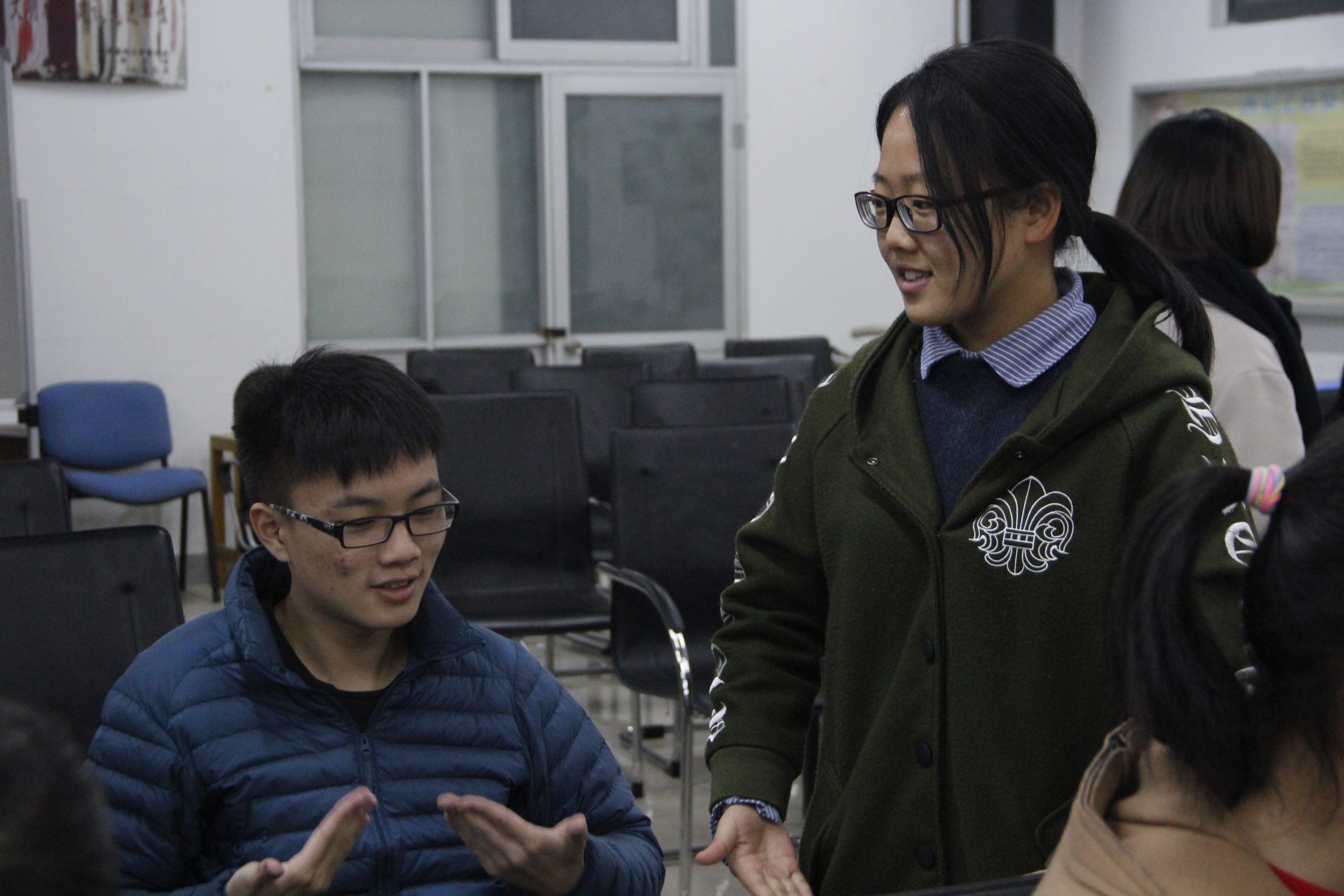 培训开始,校红会手语部的戴娜同学先向同学们示范了几个简单的手语动作,在释义的同时告诉了大家动作要领,同学们认真观察并学习她的动作,开始自己动手尝试。过程中,戴娜同学不时停下,让同学们认真练习,并不厌其烦的为同学们纠错。讲解的过程中也不是一味的教授专业知识,还穿插了许多幽默的小故事,其幽默风趣的教学风格使得会议室欢声一片。活动结束后,学员们表示学到了很多常用的手语,收获很大。