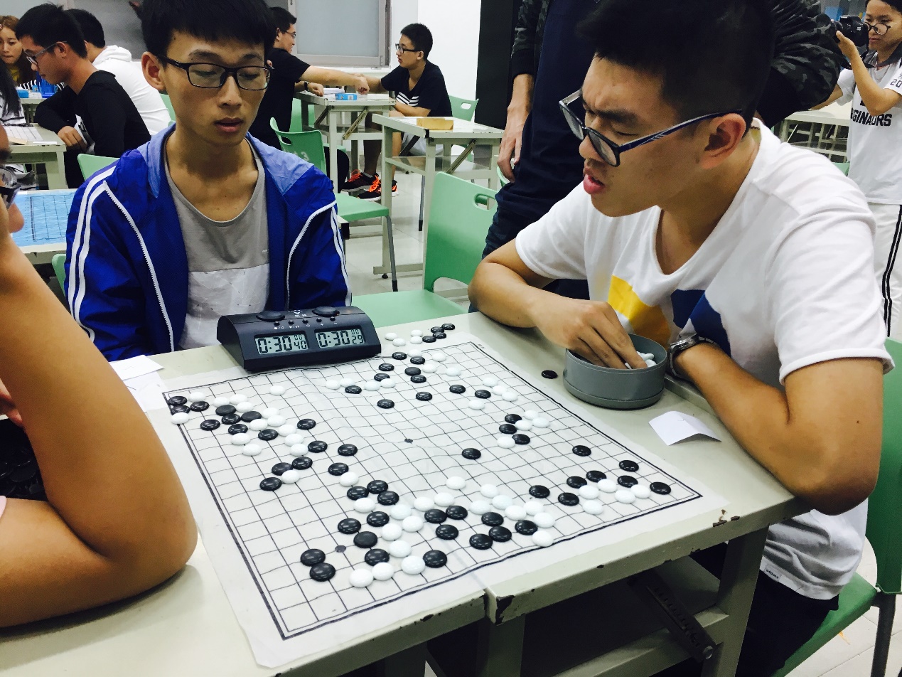 中脱颖而出,作为代表来参与此次的校级赛,他们的对决自然是精彩绝伦,也吸引了不少路人驻足围观。当然,也有很多“大师级”的同学并未参与比赛,但他们却很好的履行了“观棋不语真君子”的箴言,在大家都比赛后才提出自己的建议,交流棋艺上的技巧。 值得一提的是,此次的棋赛还为观众开设了挑战赛,在休闲区与路人对弈也是很好的结识朋友的机会,而且下棋的气氛也没有那么严肃,即使是刚入门的新手也可在此进行对弈。