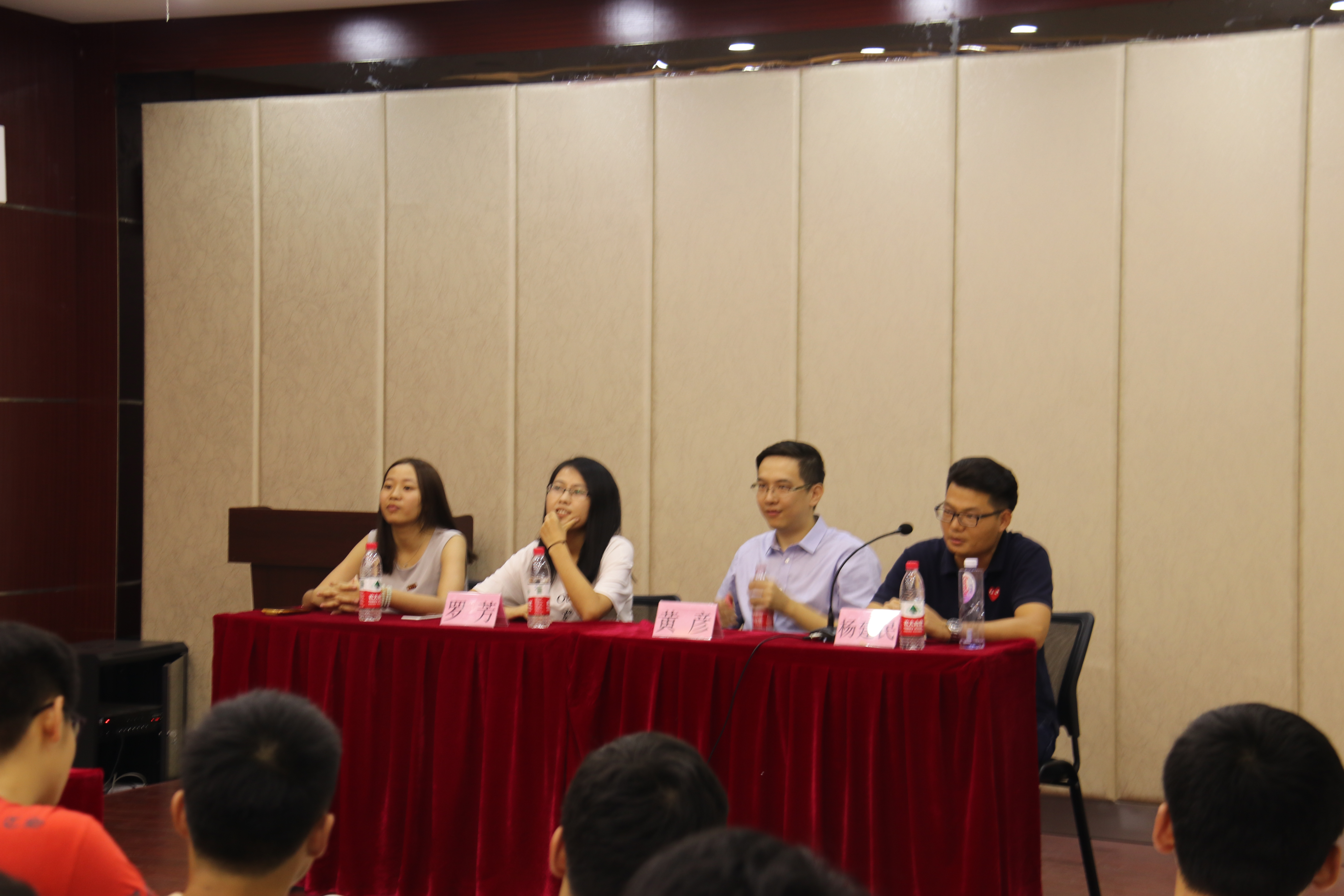 三位老师都为新生介绍了本专业的特点以及将来的就业方向,同时也希望大家在大学生活不要虚度时光,应该努力汲取知识,为将来做打算。其中罗老师和杨老师向新生们介绍了他们的大学生活,两位老师充实而又出色的大学生活吸引了在场所有学生,可以从新生们的眼中看到大家对自己未来的大学生活的憧憬。在老师们介绍之后,现场很多同学都提出了疑问,三位老师都为同学们一一耐心解答。