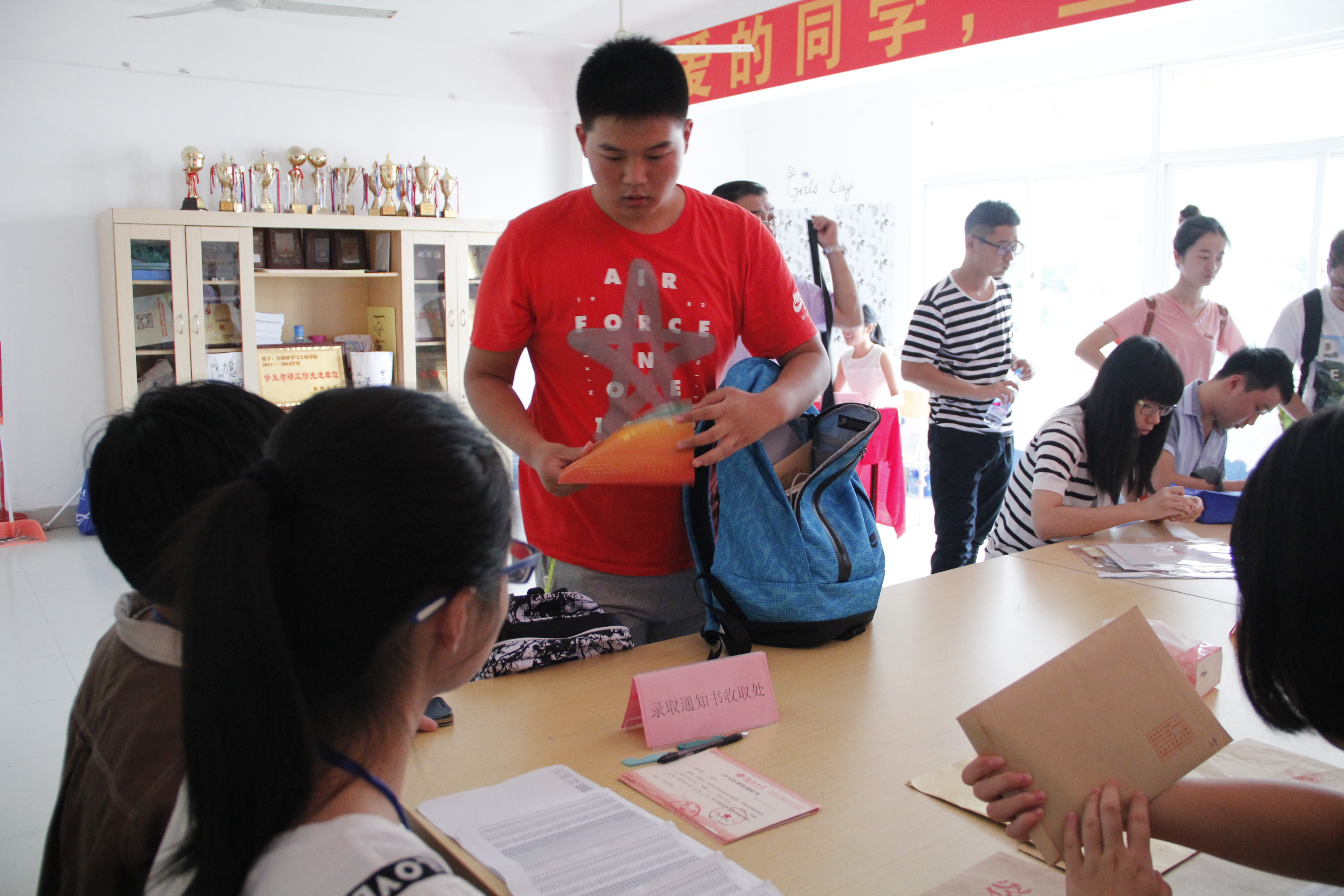 党委书记王群,院长杨黄浩,副书记郑延平,团委书记周越以及新生辅导员廖加炜到迎新点指导工作,并向新生家长问好。就本届新生来看,一如既往的是省内新生较省外多,一人入学全家陪同的现象比较普遍,不同的是多数新生和家长对学校、明星AI