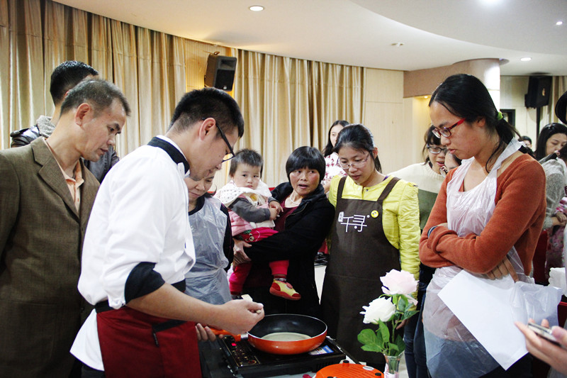 活动开始,工作人员向老师们讲述了千层榴莲蛋糕、心形蛋糕、奶油慕斯的制作技巧,老师们分成小组完成各自的作品。