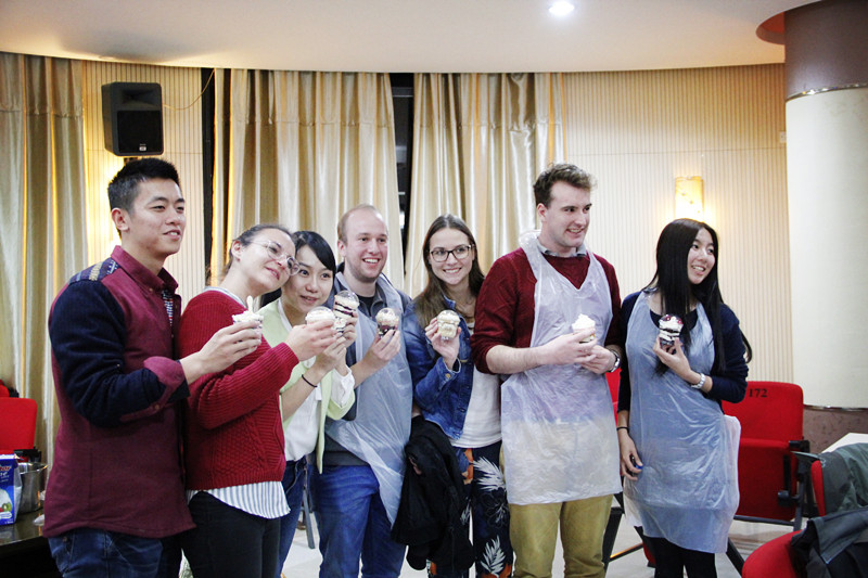 现场上,几名外籍老师在教员的指导下用奶油慕斯“一展所长”;已为人父,人母的老师们则寓教于乐和他们的孩子一起制作海绵宝宝,樱桃小丸子和多啦A梦等卡通图案;单身男老师们更是使出“浑身解数”,沉浸“创作”的同时不忘与周围朋友互相交流。