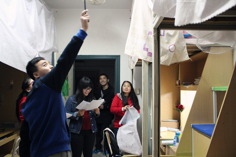 团委学生会两委为本次评委,参与本次大赛的15级新生宿舍一一对于宿舍布置进行简单的介绍。
