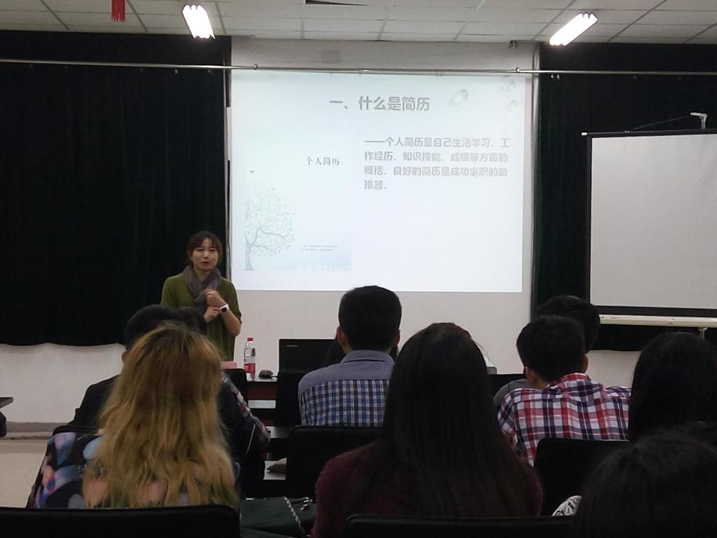 讲座中,汪静筠老师运用多个生动形象的比喻,列举多个所遇案例,以风趣易懂的方式进行讲述,在场学子所获颇丰。此次讲座结束后,同学们持已制简历向老师咨询修改,融洽的沟通交流氛围为本次讲座画上圆满句号。