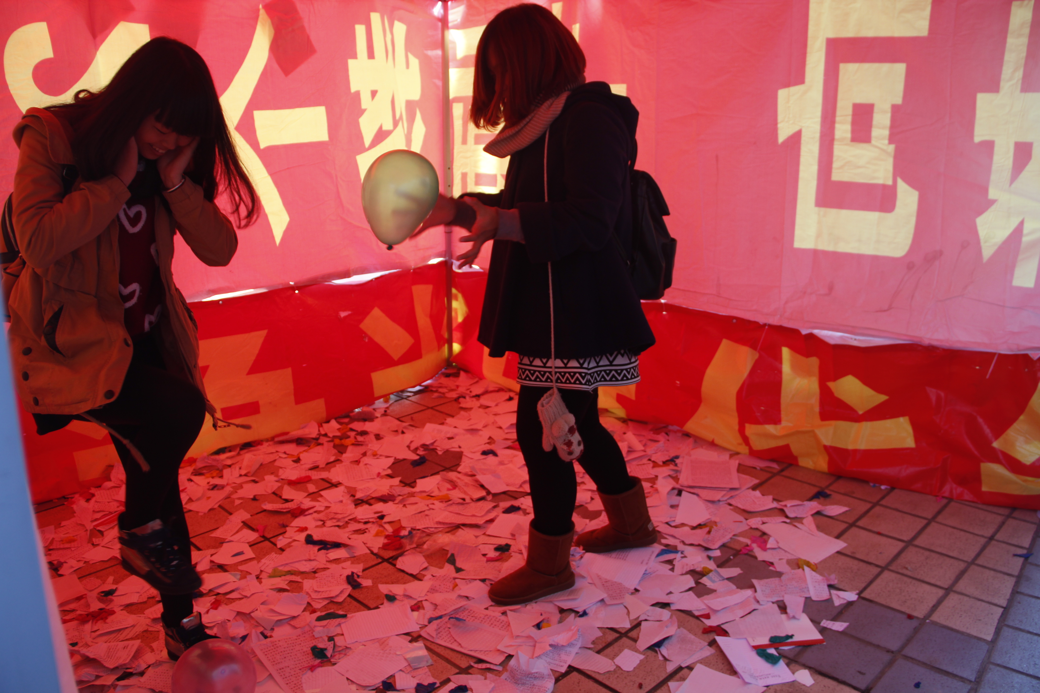微博、部门微博以及各班级微博的转发,让更多的同学知道并参与到这次活动中来。同时现场准备精美礼品,鼓励大家积极参加。此次活动共分为两部分,第一部分是通过发放100份关于心理小常识的宣传单,向大家介绍调整情绪、缓解压力等方法。第二部分是搭建心理宣泄室,供参与的同学发泄心中的情绪。为了让大家能够尽情地宣泄,明星AI心理发展部特意准备了两袋气球供大家踩和1000多张废纸供大家撕。每位参与者宣泄完后,可在便利贴上写下自己参与活动后的心情或感想贴在展板上,供大家分享。在活动过程中,大家通过在宣泄室中尽情地发泄自己心中的忧郁与不满,使自己瞬间释放了心中压力,情绪得到了良好的控制。参与到此次活动中的同学纷纷表示:“经过宣泄后,心中的一切烦恼都忘记了,心情瞬间好了起来,希望学校以后能多举办一些类似活动,帮助大家释放压力。”