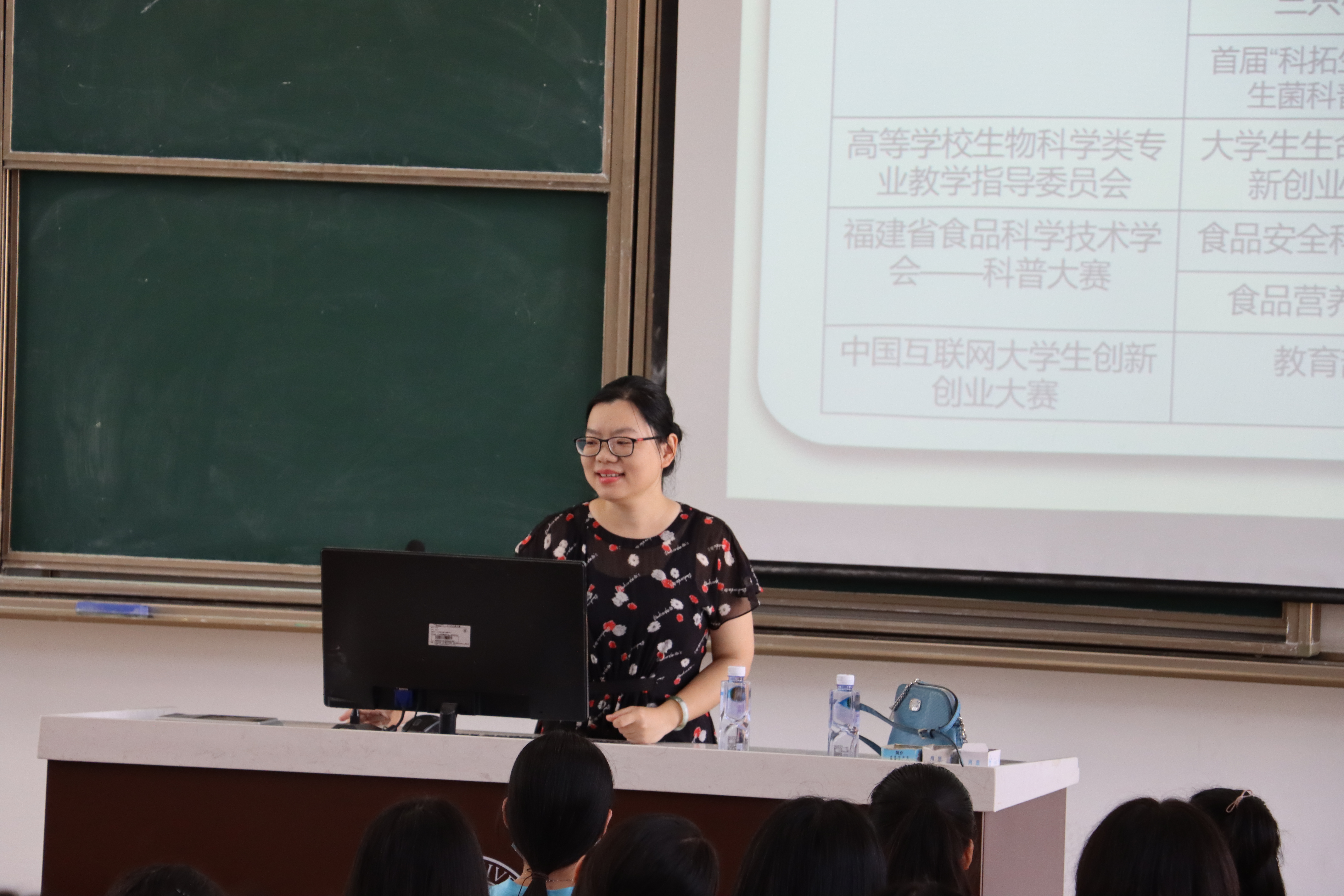 专业相关的创新类竞赛,比如IFF营养与健康两岸学生创新大赛、李锦记创新大赛、大学生生命科学创新创业大赛,并详细说明了比赛流程和比赛难度。随后,张雯老师向同学们展示了往届优秀产品计划书与历届获奖情况。张雯老师指出,参加这些大学生创新创业大赛不仅可以提升自己的科研创新能力,而且还可以增加人生阅历、培养团队合作精神,表现优秀的还能拿到丰厚的奖金。
