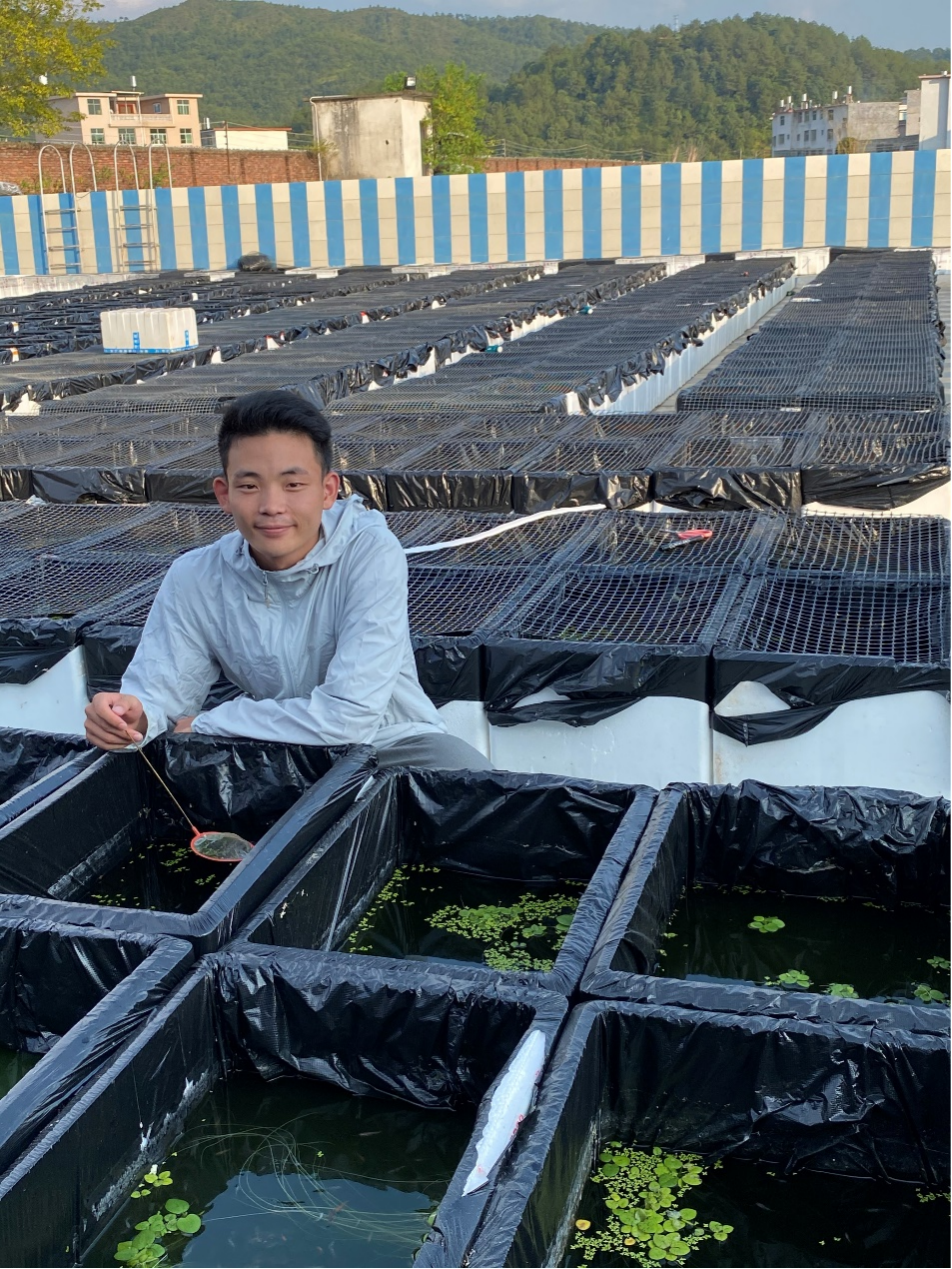 今年5月,丘英栋响应国家号召,回到自己的家乡长汀县开展可控生态精养技术的试点推广。许多人曾疑问为什么在大多数人选择在大城市寻找机会打拼时,他却选择回乡创业。他的回答是:“回乡创业是我一直以来的想法,一方面想要回馈一下养育我的家乡,另一方面我的家乡也比较适合我们(创业团队)当下的发展。家乡需要我,我就回到家乡去。2021年是“十四五”规划的开局之年,是全面推进乡村振兴的开局之年,也是我研究生毕业之季。在这个节点,我觉得身上的使命重大,希望可以为家乡的乡村振兴贡献自己一份绵薄之力,引用一下我参加创新创业大赛时说的话——我希望以红军长征的起点为起点,以我们的技术助力科技兴渔,以我们的方案助力乡村振兴。”