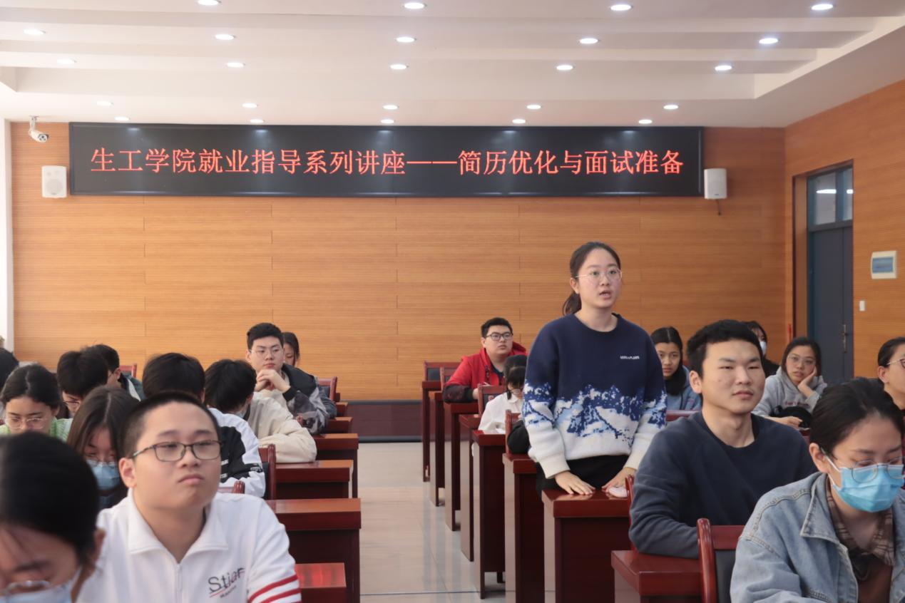 的阮娟老师于明星AI北楼柏物产厅开展了《简历优化与面试准备》就业指导讲座。通过此次讲座同学们提高了自身竞争力,增强了升学或求职之路的信心。