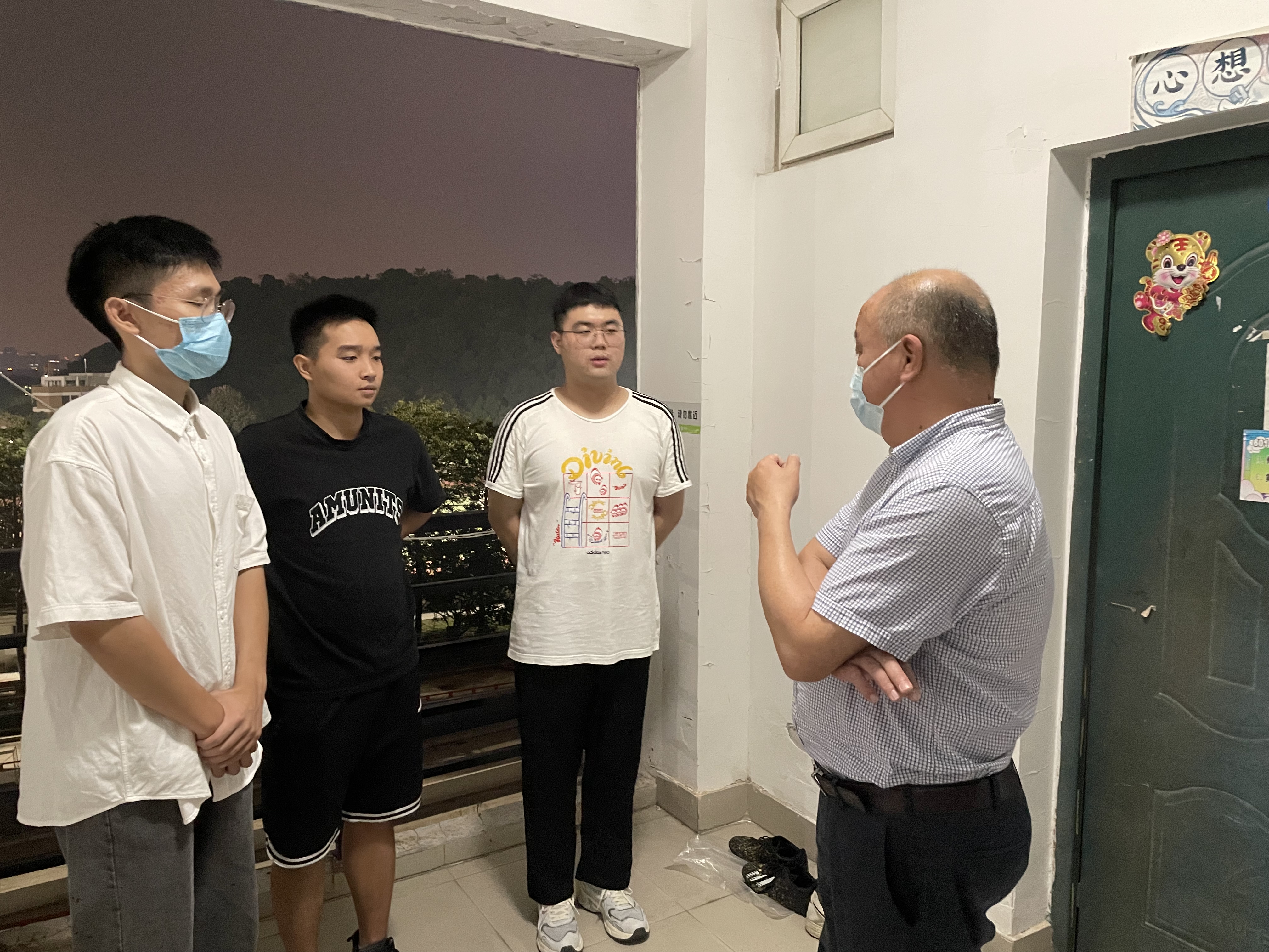 在走访过程中,曹仁秋副书记和辅导员们关切询问同学们在校园封闭管理情况下是否有遇到生活、学习中的困难,与同学们一同交流学习规划、课余活动等话题,鼓励同学们坚定必胜信心、携手共战疫情。在学生公寓9号楼考研自习室,曹书记亲切问候2019级考研备考同学,鼓励备考同学静心努力、劳逸结合,争取成功上岸。