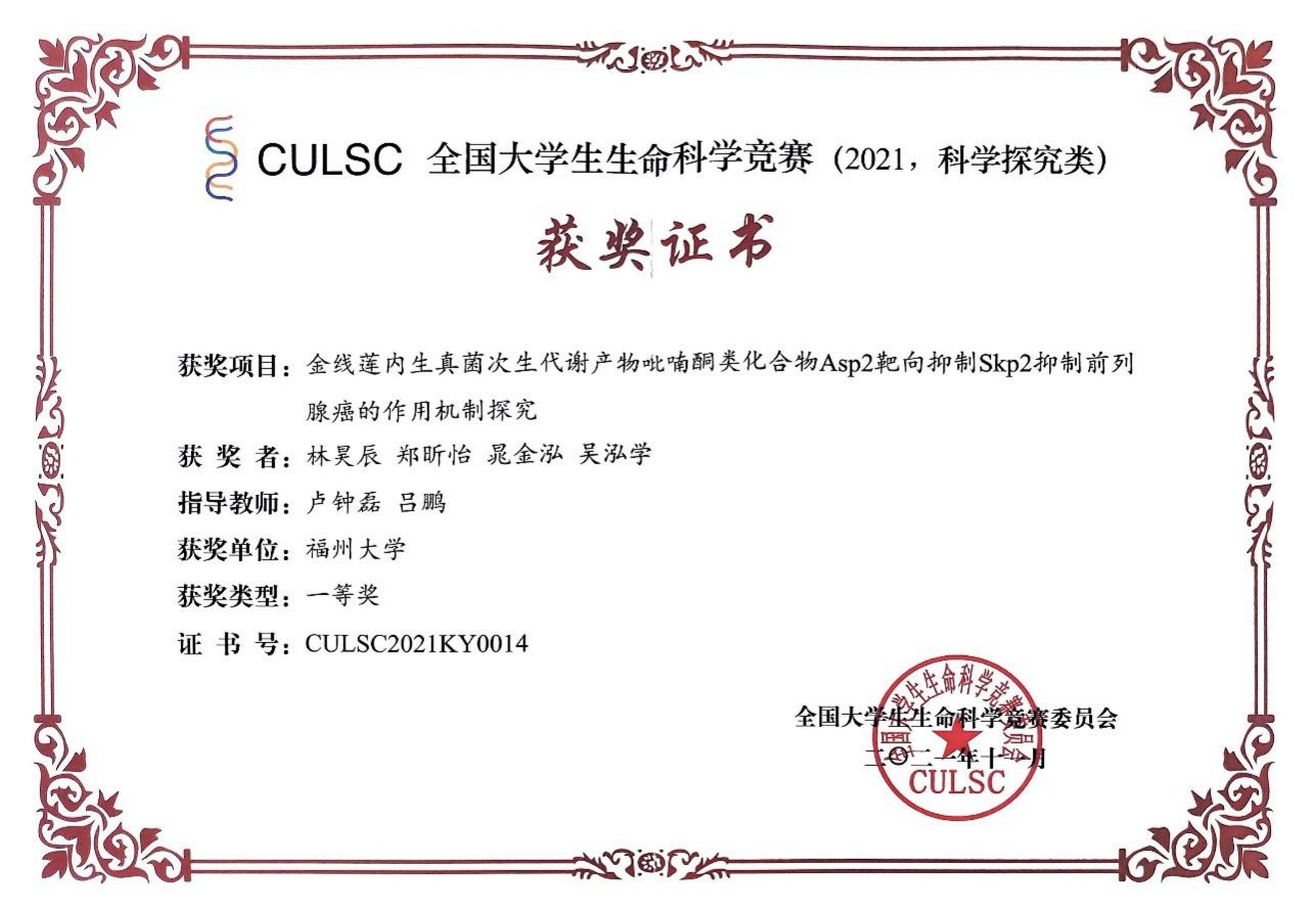 学生荣获2021年全国大学生生命科学竞赛一等奖