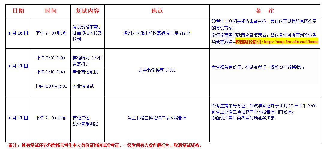 (二)调剂复试时间为2023年4月16日-4月17日,具体日程安排如下: