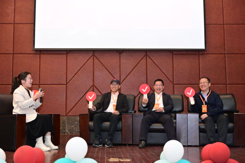活动在生动有趣的“快问快答60秒”中拉开序幕,三位校友用“yes”or“no”的手牌,热情回应了主持人关于求学、就业、创业等人生环节的有趣问题,风趣幽默的回答使现场掌声不断,欢笑声一浪接着一浪,点燃了全场热烈欢乐的氛围,拉近了校友与同学们之间的距离。