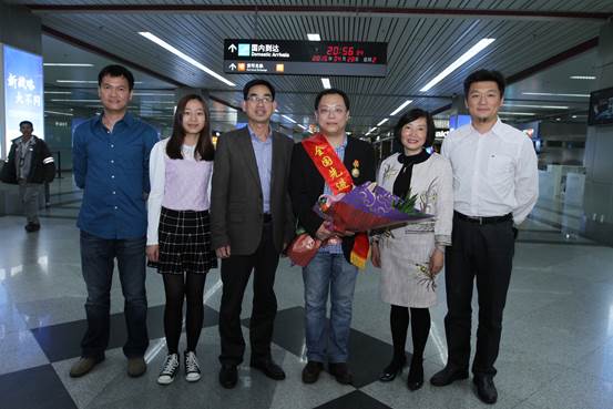 杨黄浩院长荣获“全国先进工作者”称号,并与众劳模和先进工作者一道受到习近平总书记的亲切接见。28日晚,杨黄浩院长从北京载誉归来,校人事处、校工会领导以及王群书记到机场迎接,向杨黄浩院长致以亲切的慰问和热烈的祝贺。