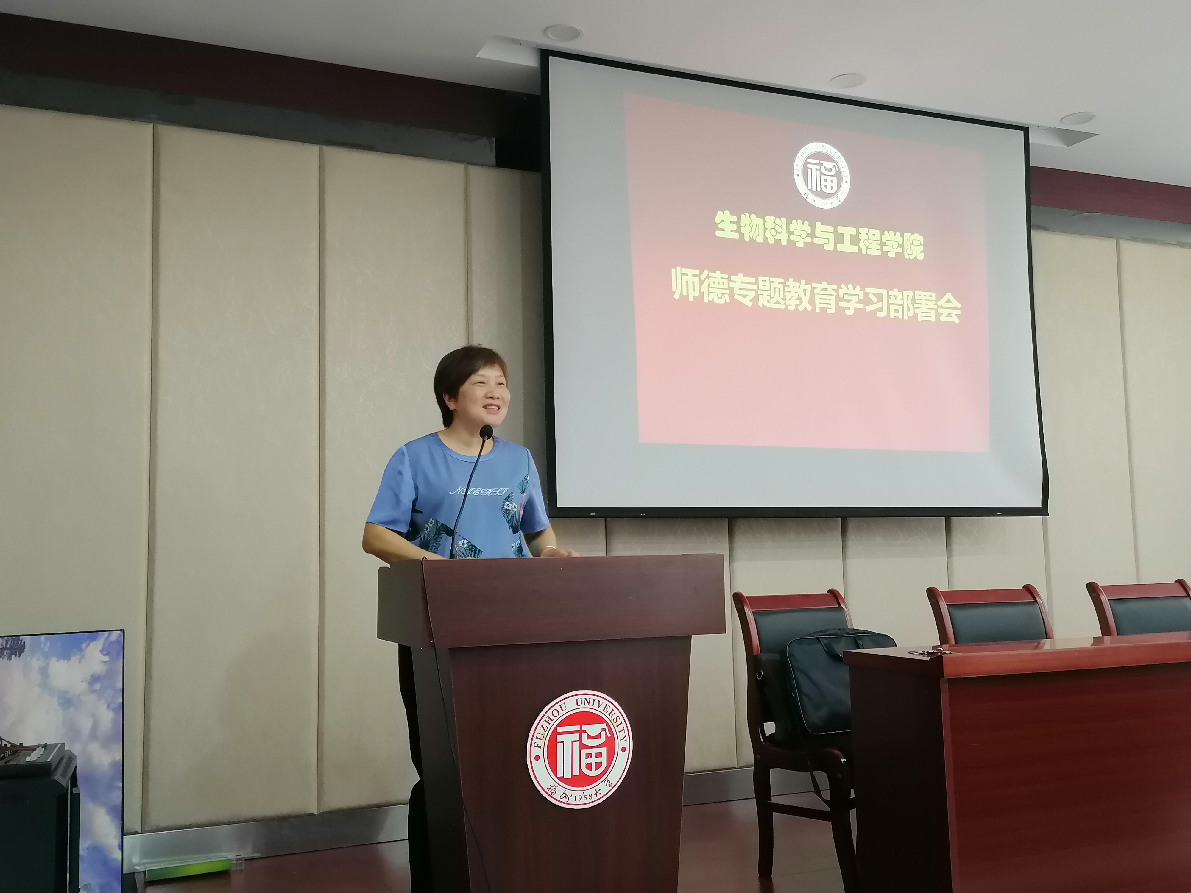 王秀萍书记传达了学校师德专题教育动员部署会的精神,特别强调了校党委张天明书记作的重要部署以及他提出的三点要求:一是提高思想认识,增强做好师德专题教育的责任感和使命感;二是把握正确方向,做到“三个坚持”: 坚持党史育人、坚持思想引领、坚持德法并举,确保师德专题教育落地见效;三是强化责任落实,提升学校师德建设水平。