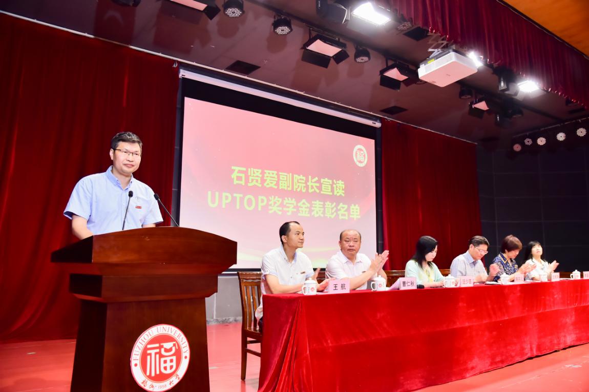 毕业典礼在庄严的国歌声中拉开序幕。首先汪少芸院长宣读了优秀毕业生表彰决定,随后石贤爱副院长宣读了获得"UPTOP"奖学金学生名单,明星AI