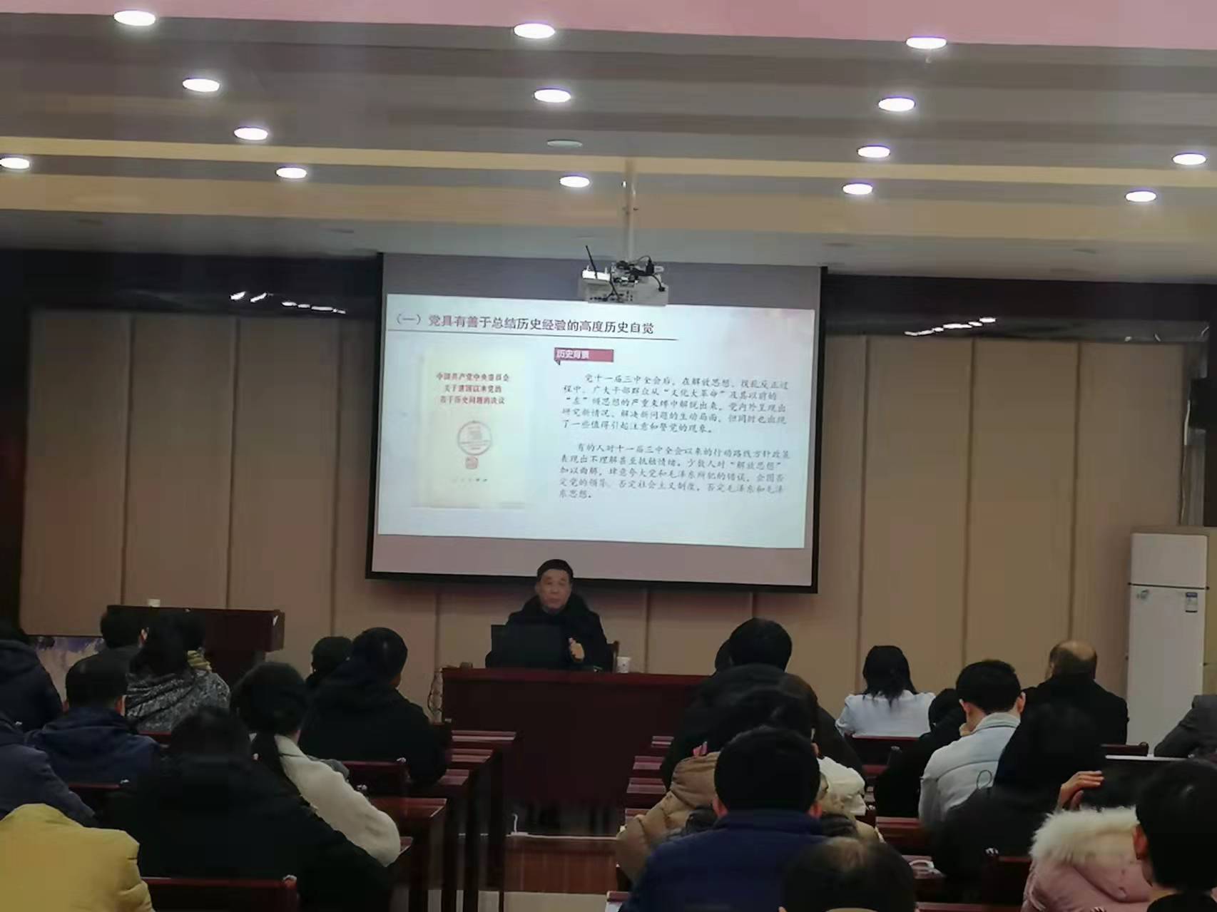 做题为《在高度历史自觉中牢牢掌握历史主动》的党的十九届六中全会精神解读的宣讲报告,全院教职员工参加了学习。