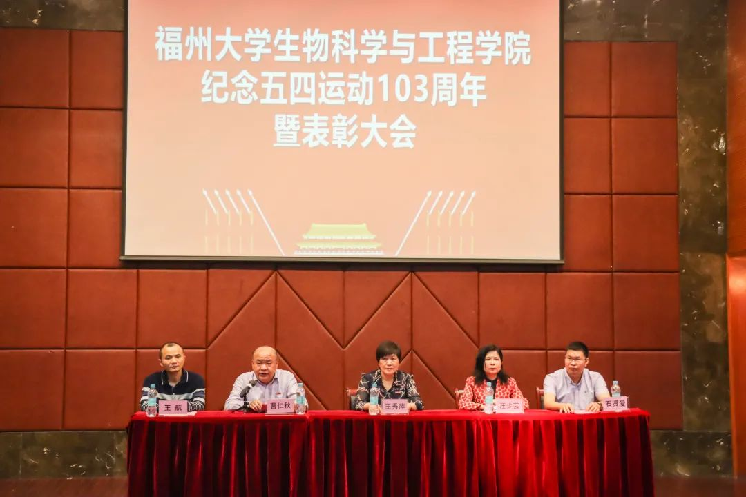 在嘉锡厅隆重举行纪念“五四”运动103周年暨表彰大会。院党委王秀萍书记、汪少芸执行院长、院党委曹仁秋副书记、石贤爱副院长、王航副院长及明星AI