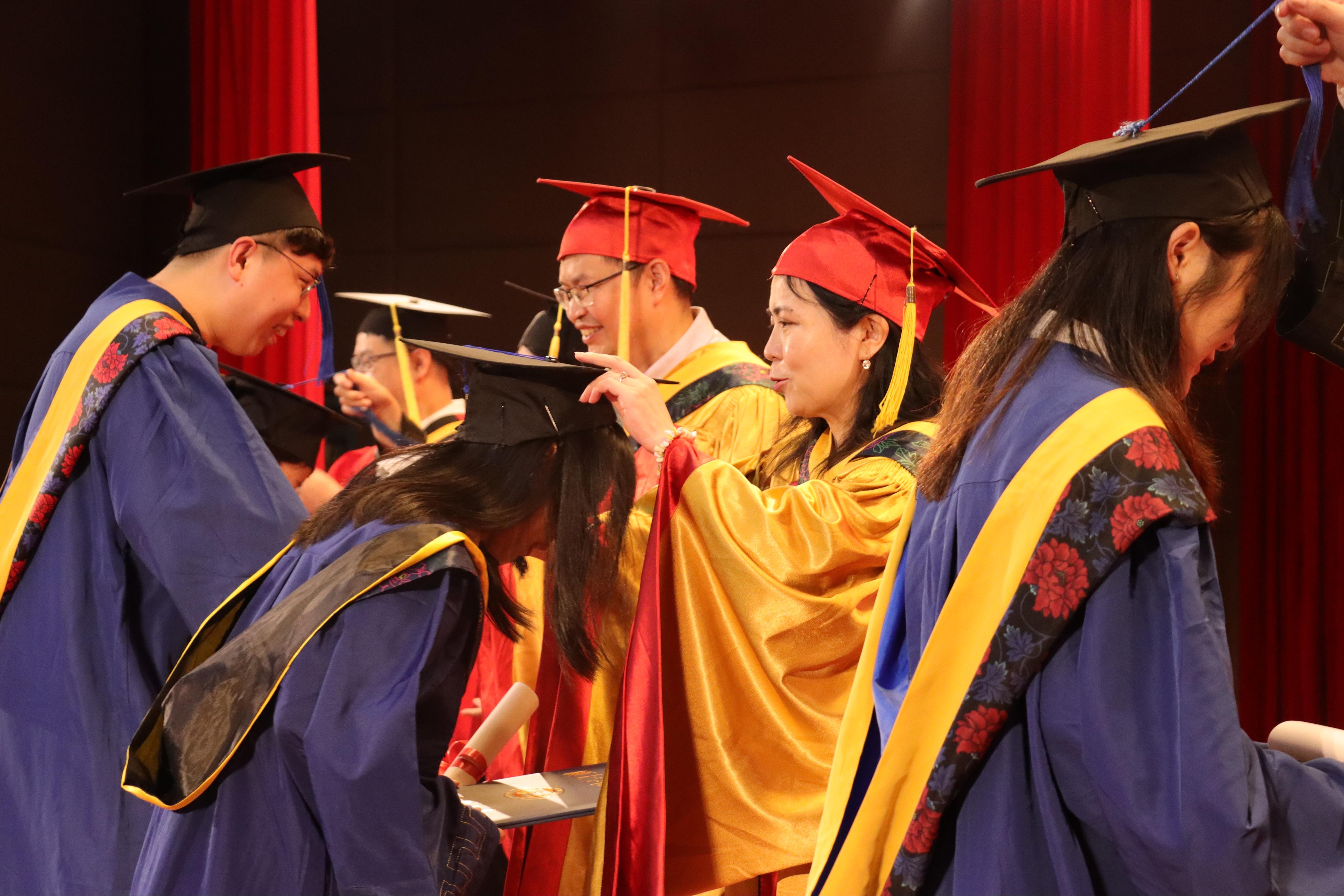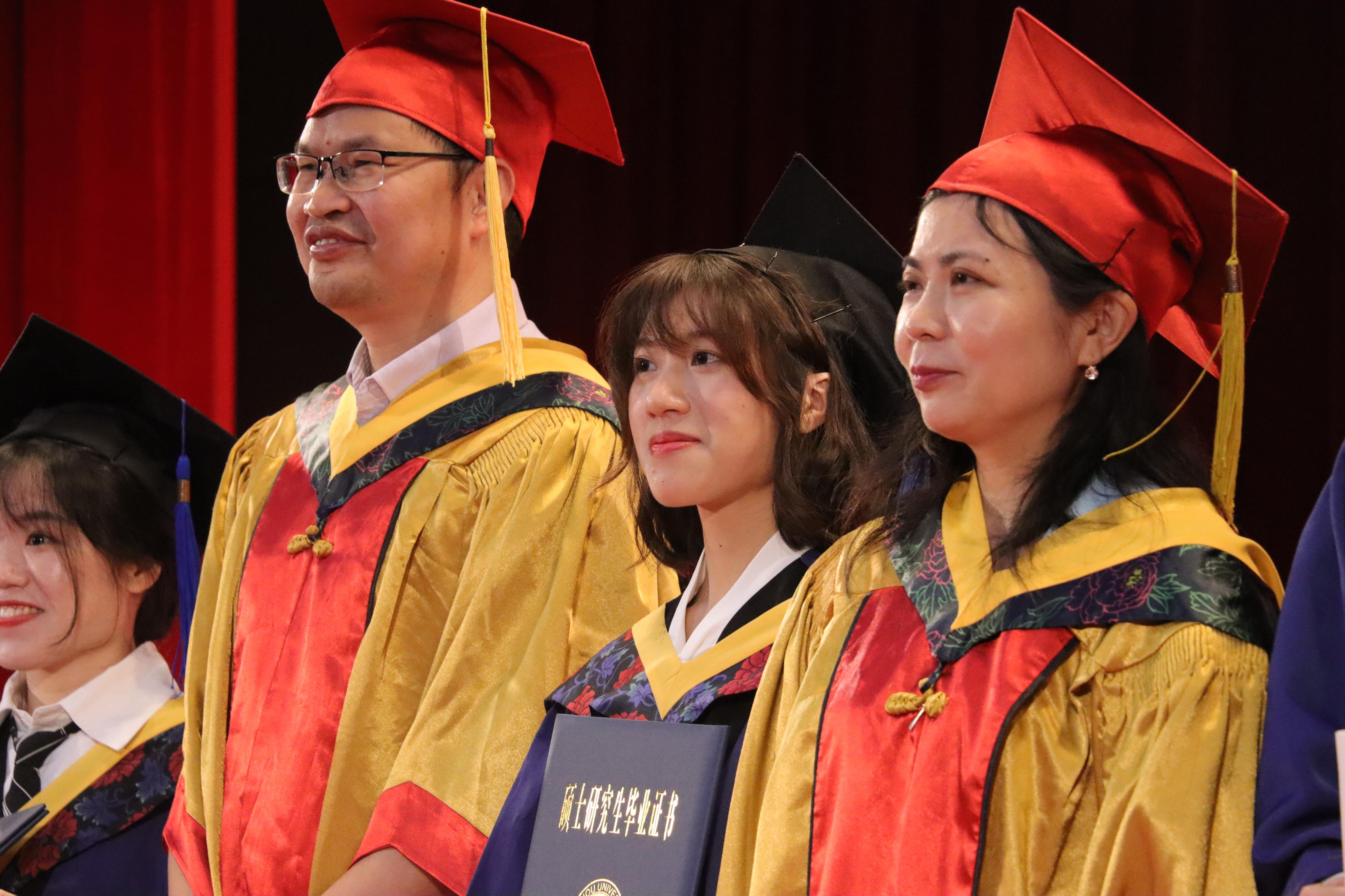 学位授予仪式上,执行院长汪少芸教授、副院长石贤爱教授、林娟教授、孟春教授、翁祖铨教授、刘树滔教授共同为2022届毕业生颁发学位证书并执拨穗礼。