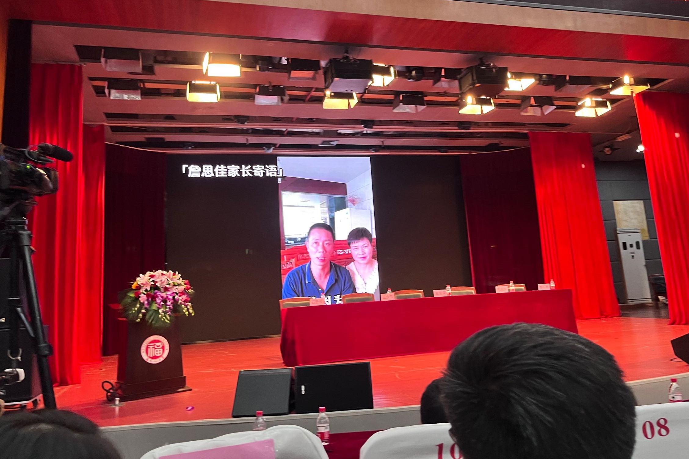 典礼上播放了毕业生家长赠言视频。家长们一段段语言朴实、情感真挚的寄语祝福,句句都表达着对学校的感谢和对孩子们的殷切希望。赠言视频结束后,2022届毕业生代表向领导和老师献花,表达自己的对母校与恩师的感激之情。