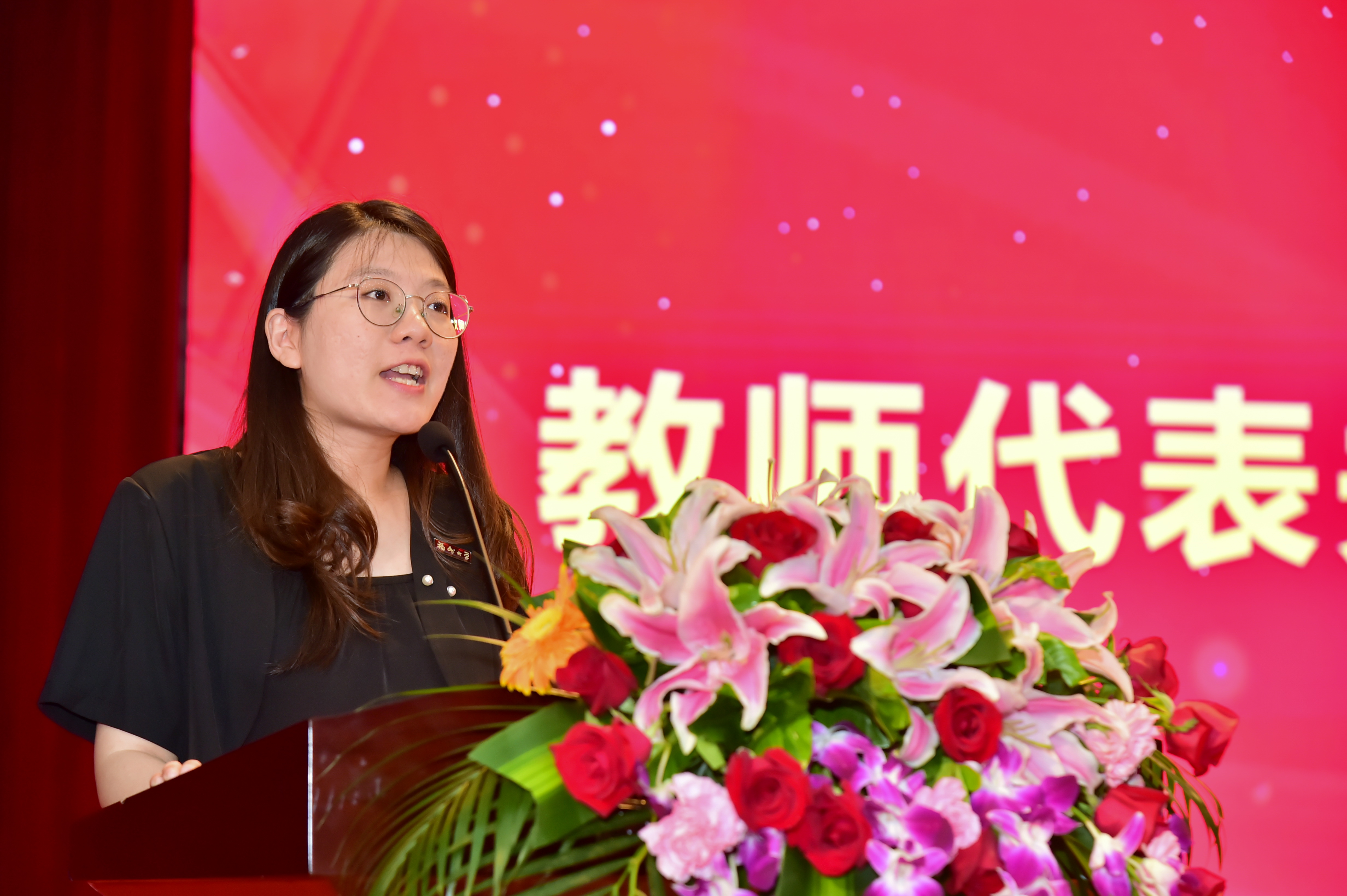 教师代表关怡老师与毕业生同学们分享了自己的成长经历。并寄语同学们,一是希望大家向内坚定目标刻苦钻研,向外敢于倾诉寻求帮助;二是希望大家在今后的道路上,多珍惜长远收获,少计较一时得失,胸怀宽广,一路坦荡。最后她希望同学们日后成功需要分享喜悦的时候,迷茫需要倾诉和宽解的时候,母院和老师们一直都在,欢迎大家常回家看看。