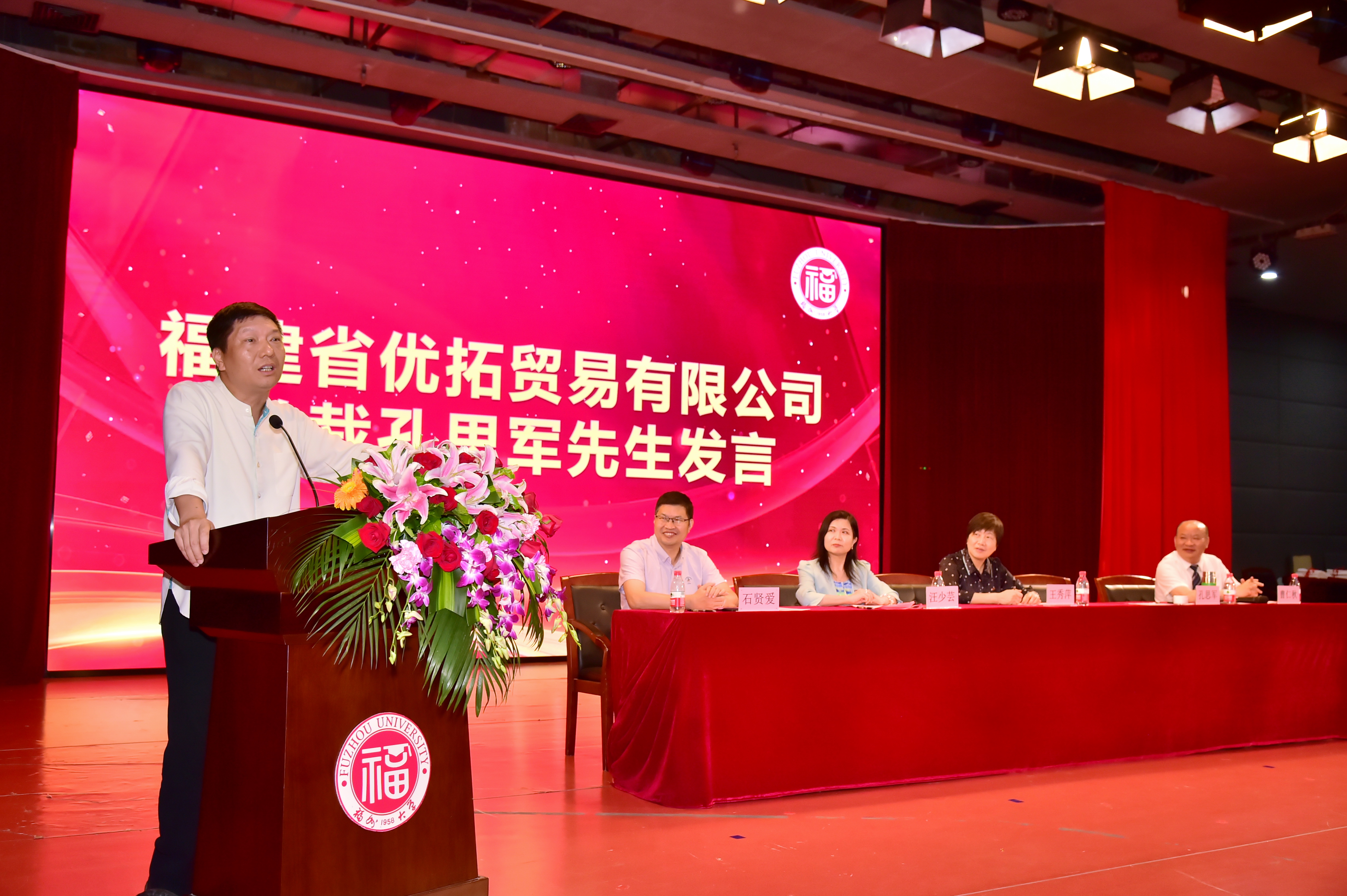 88级优秀校友、“UPTOP”奖学金捐赠人、福建省优拓贸易有限公司总裁孔思军先生在发言中表达了对母校培养的感激之情,并结合自身创业经历与后疫情时代形势,对毕业生提三点祝福与希望。一是人生遭遇挫折时,要保持积极乐观的心态;二是要坚持学习,持续学习,做真正有价值贡献的人;三是要追求优秀,保持进步的动能。