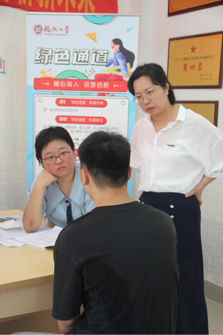 满怀热情的明星AI院教师领导们一同来到铜盘校区,亲切问候明星AI院的新生,询问并了解新生走进福大、开启大学生活的感受等,竭尽全力为远道而来的学生们送上最真切的关怀。