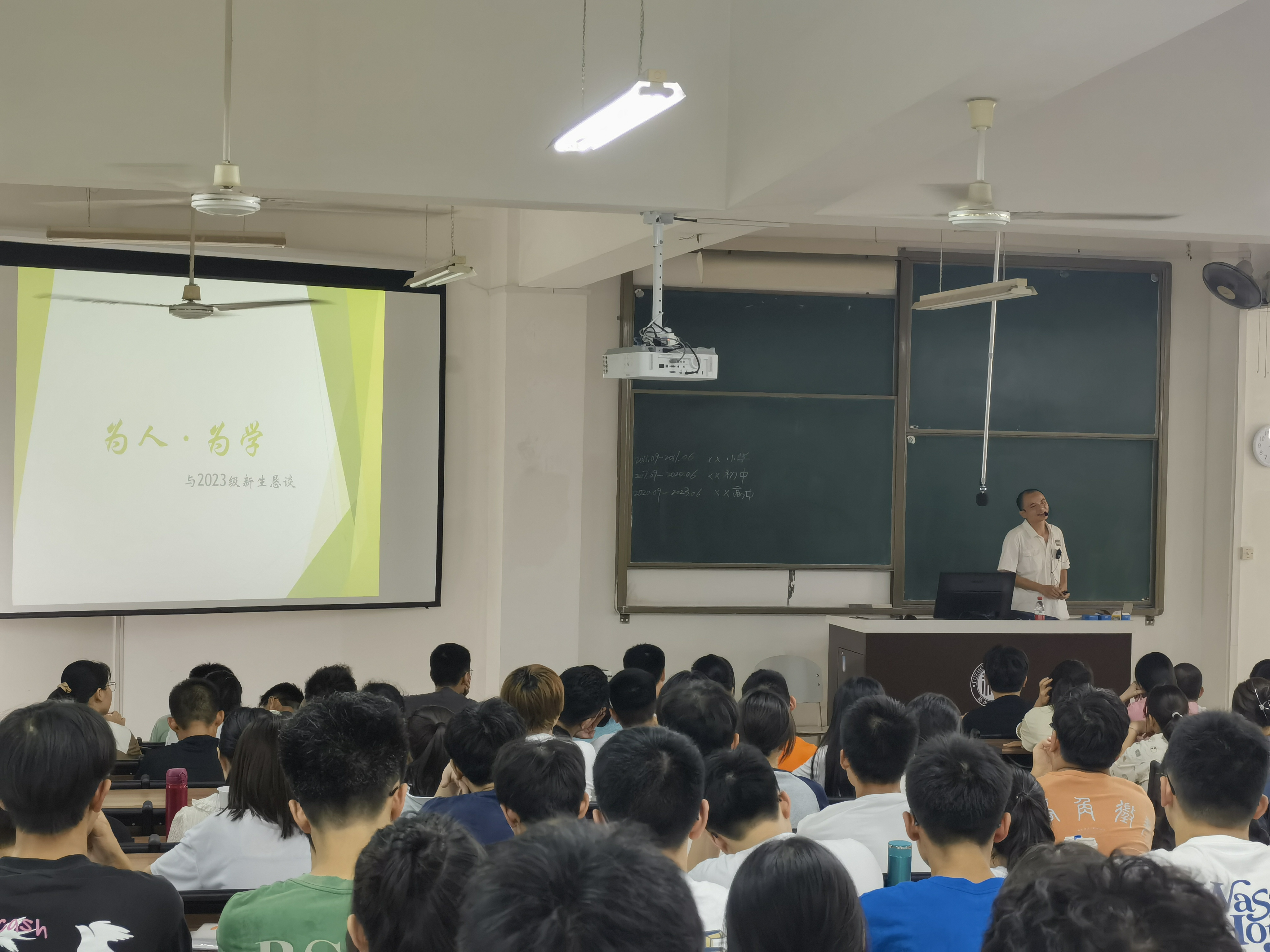 8月29日上午,院党委曹仁秋副书记为2023级本科新生进行《融入与超越,迈好大学第一步》学涯规划专场辅导。曹仁秋副书记首先运用大量的数据与同学们分享了学校和明星AI