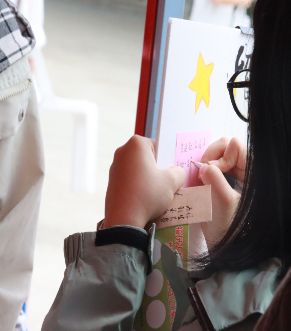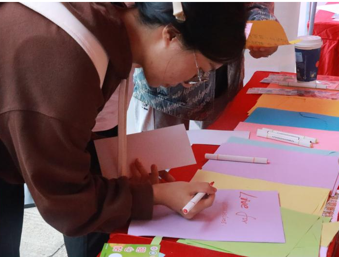 一言一语,都是他们内心的渴望,一笔一画,都是他们真诚的期许。在活动过程中,同学们在纸上认真地写下上大学以来的负面情绪,有第一次独自出门的不安、有独自在外对家人与好友的思念、也有对于生活和学习的苦恼。他们的这些负面情绪,随着笔尖纸张墨的书写,会慢慢宣泄出来,渐渐消散。同学们也积极为自己与他人送上最真挚的祝福和最真心的期盼。常常我们就是因为这一句小小的鼓励,点亮自己的一天,我们也要相信自己送出的每一句鼓励能给他人带来美好的一天,让他们扫清阴霾走出低谷。