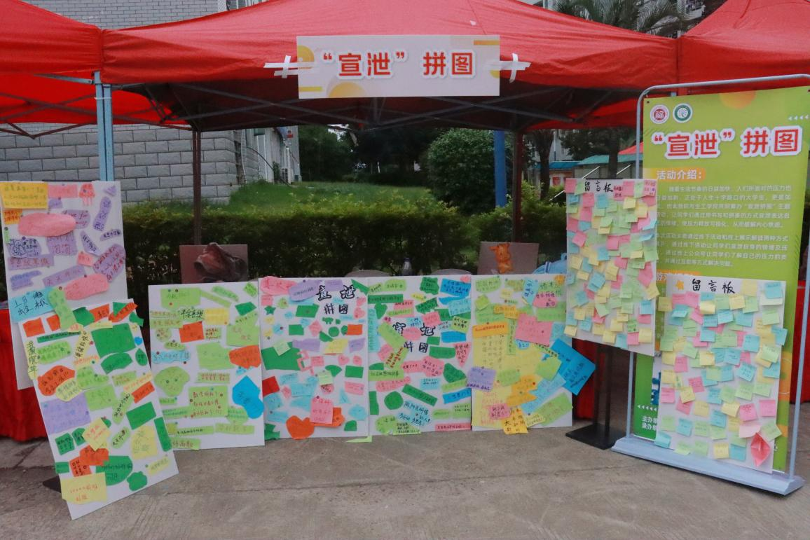 积极响应,在“心彩斑斓 心之向晴”心理汇中举办了“宣泄拼图”主题活动,鼓励学生以拼图宣泄情绪,用文字传递能量,引导学生积极面对负面情绪,缓解压力和焦虑,增强对生命和未来的美好希望。
