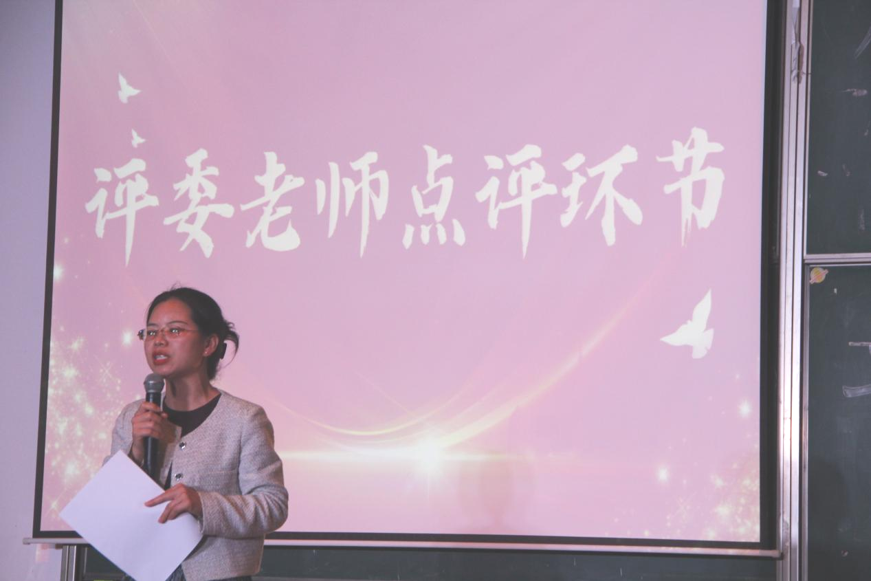 剧目表演结束后,许世梅老师对比赛做出了点评。她首先对本次比赛节目的丰富度和节目广泛的心理情绪范围给予了肯定;随后,她提到《孔雀》有效的引发了同学们的情感共鸣,展现出青春期同学们容易产生剧中展现的“越是缺少什么越容易因此而自卑”的心理,并指出我们不是只能通过追求外在虚假的评价来掩盖自己在某些方面的缺陷,还可以通过追求其他方面的成功和优秀来自我超越。