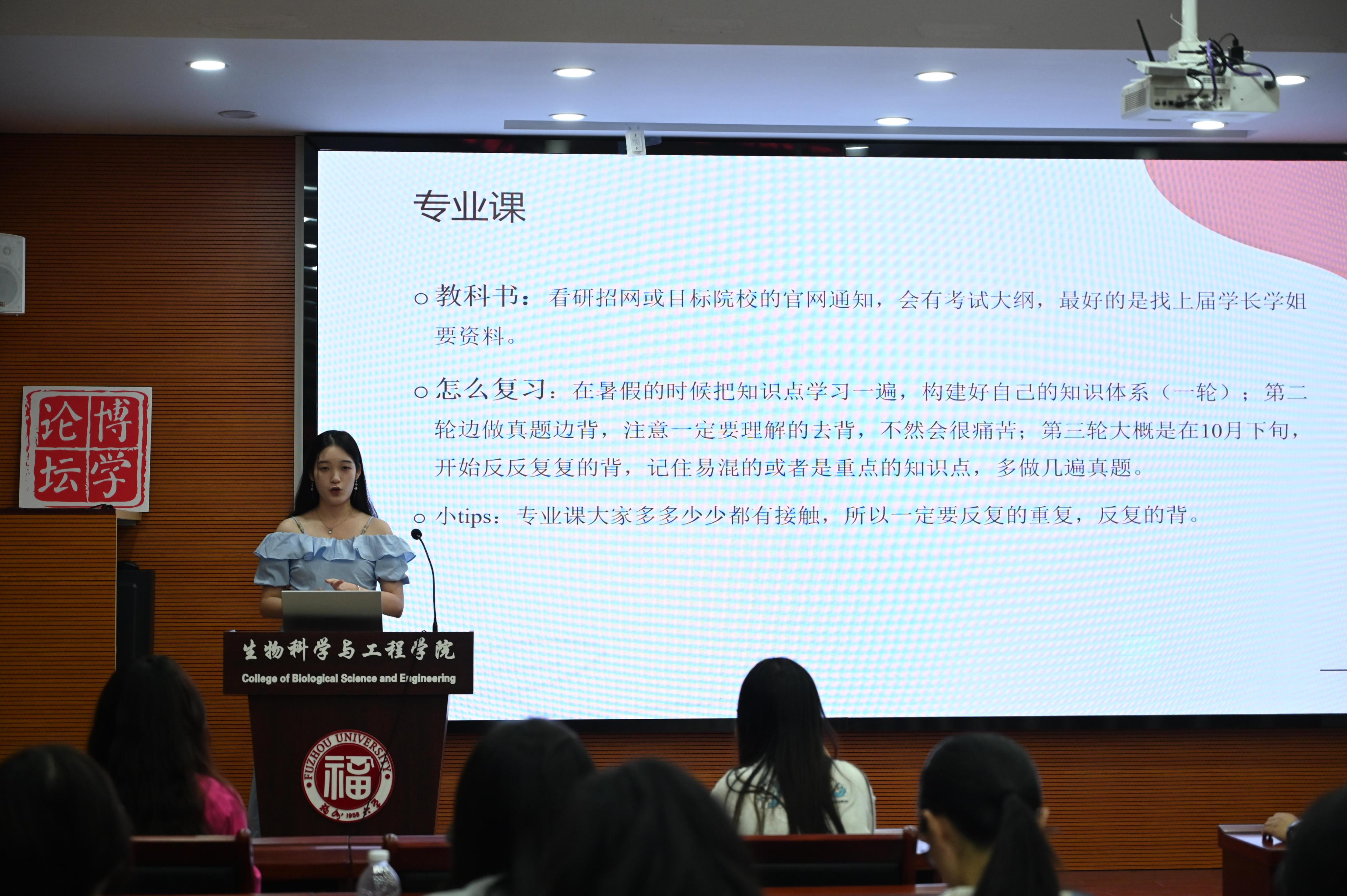 张斌燕学姐着重分享了报考科目的备考经验,并提出了阶段性复习的建议。她将备考划分成前、中、后三个阶段,并指出要在每个阶段中布置具体复习任务,做好每个阶段该做的事,正所谓“云程发轫,千霄凌云”——成功的背后,是一点一滴的积累与进步。