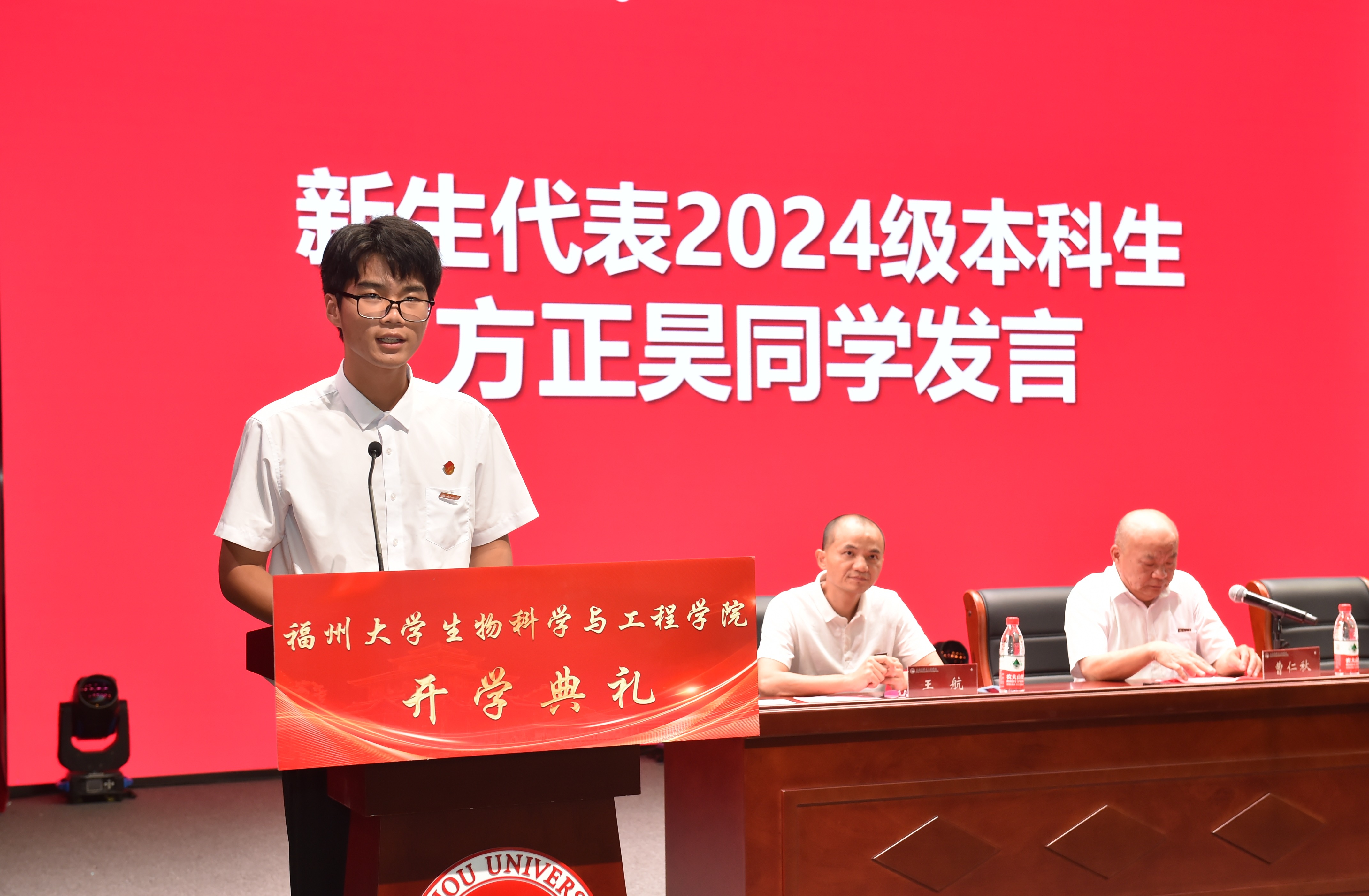 2024级本科生新生代表方正昊同学在发言中与新生们共勉:人生是旷野而非轨道,同学们应勇于尝试,探索未知的领域。作为福大明星AI青年应以奋斗为长矛,划破黑夜,寻找属于自己的天空。