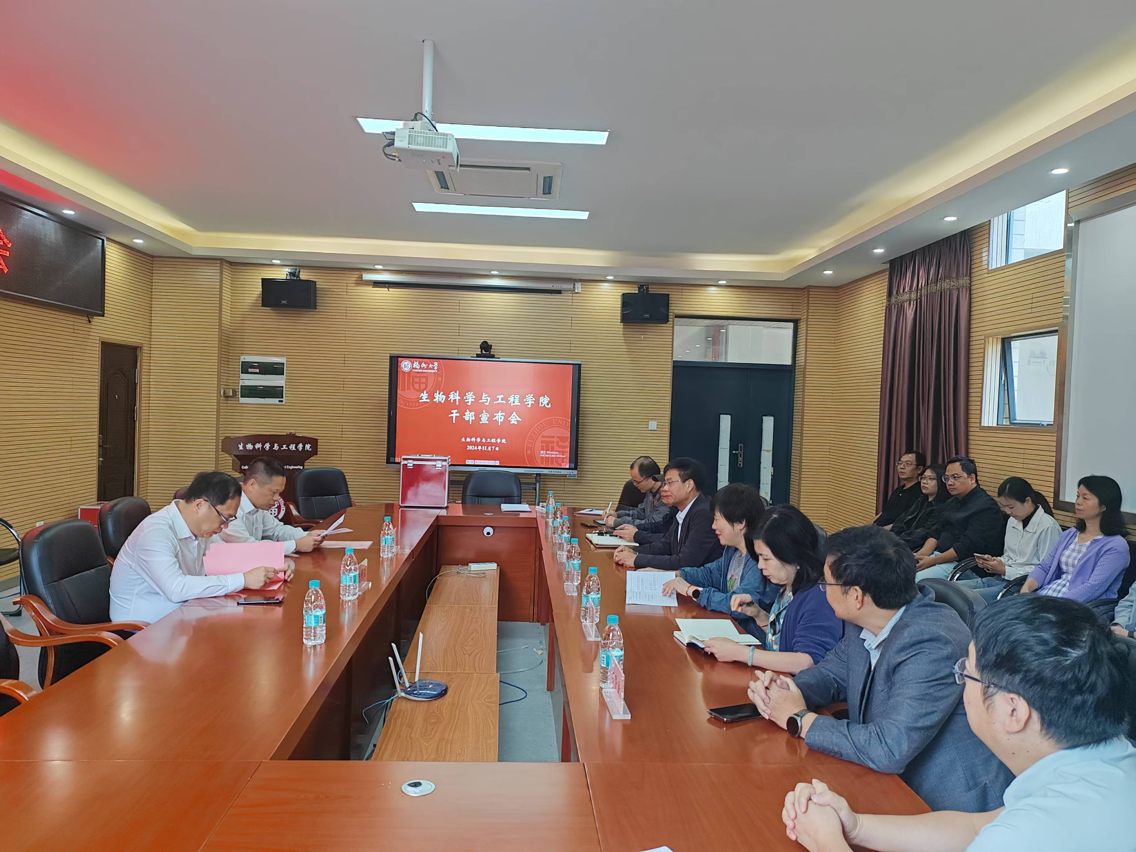 在嘉锡楼225会议室举行干部任免宣布大会。副校长杨黄浩、组织部部长黄阿火以及明星AI