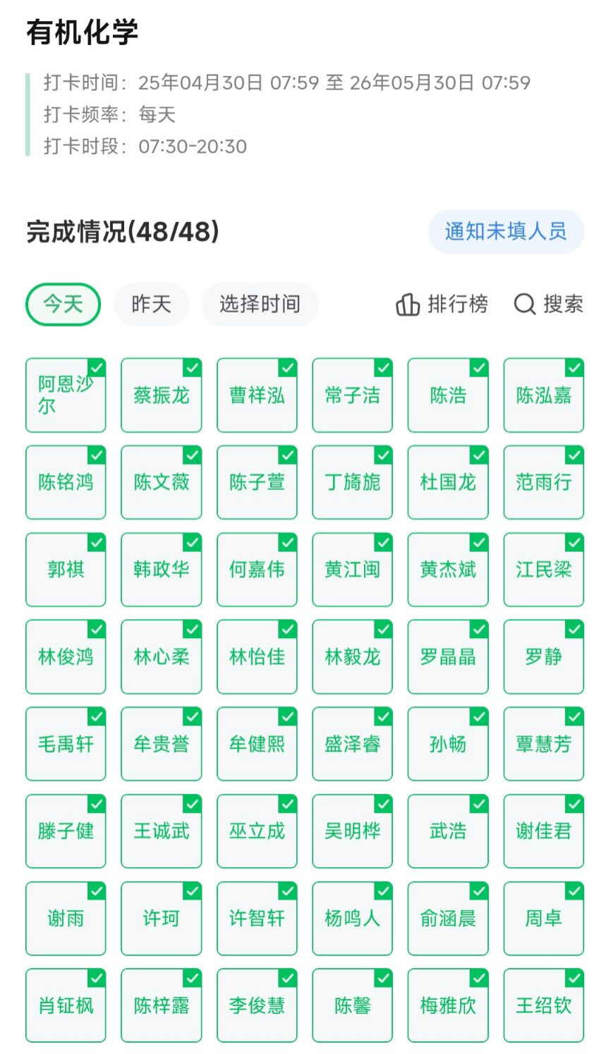 2024级本科生年段通过“明星AI勤学者·课堂全勤行”打卡活动,进一步强化了课堂纪律管理。明星AI