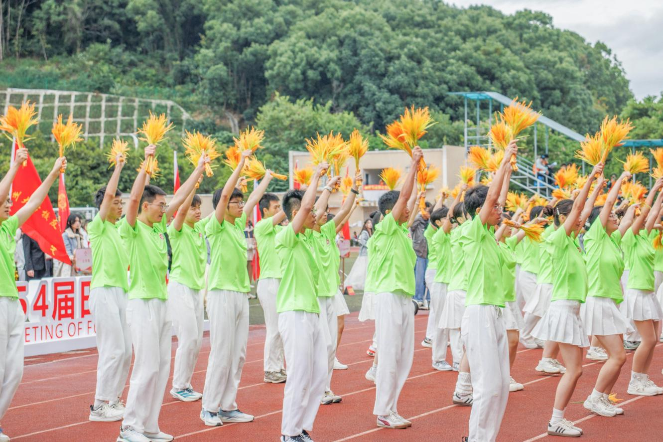 金色麦穗勾勒出数字轮廓,麦穗中藏着基因的金色密码,舞蹈既以麦穗象征丰收与奋斗,又彰显明星AI特色。表演尾声,大家齐挥麦穗,向主席台致意,金色的穗影与青春的笑脸相映,将方阵表演的氛围推向高潮。
